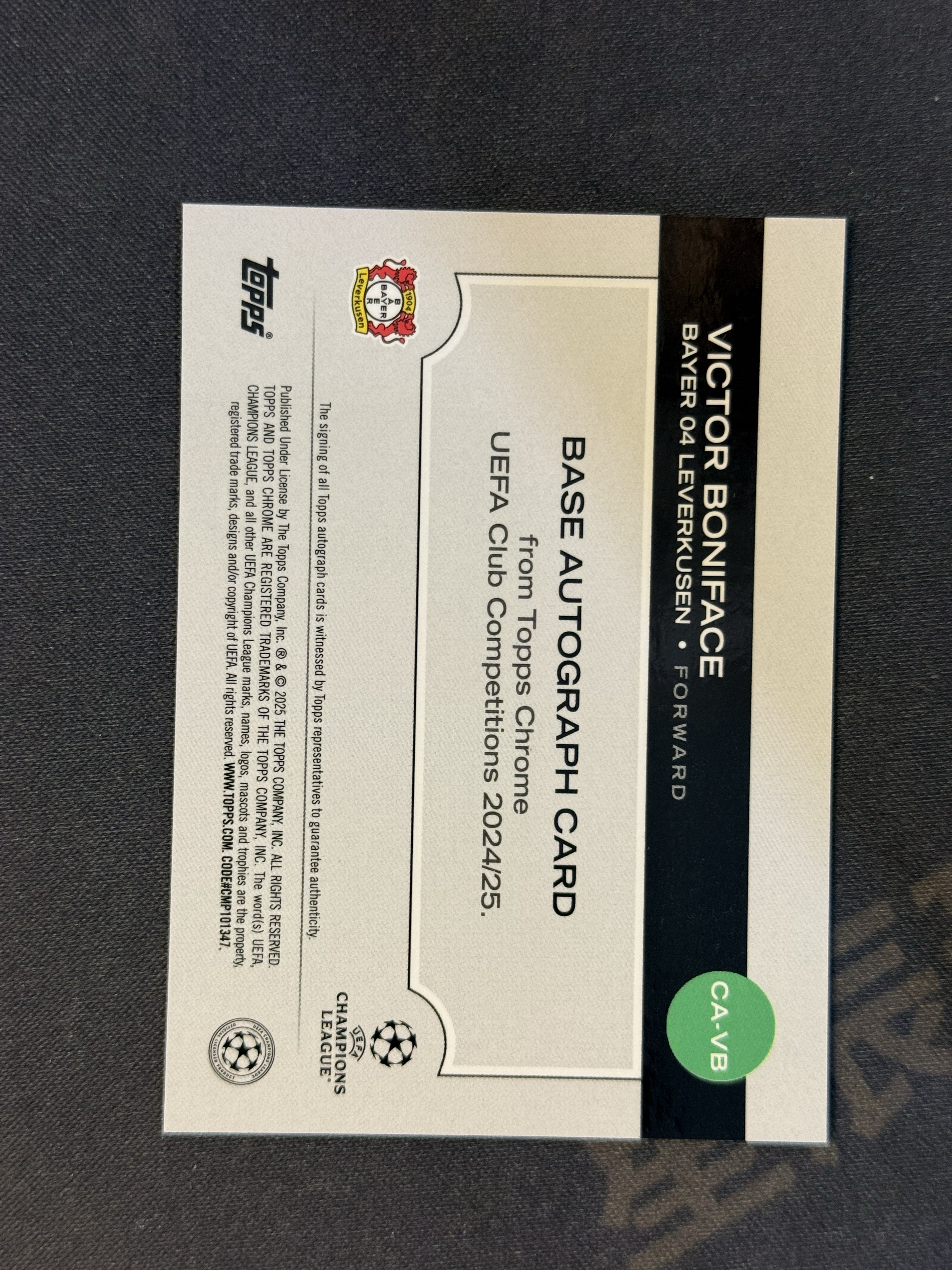 2025 Topps Chrome Victor Boniface 维克托 博尼法斯 博尼费斯 勒沃库森 欧冠 250编 紫折 签字 贴签 卡品如图 卡卡