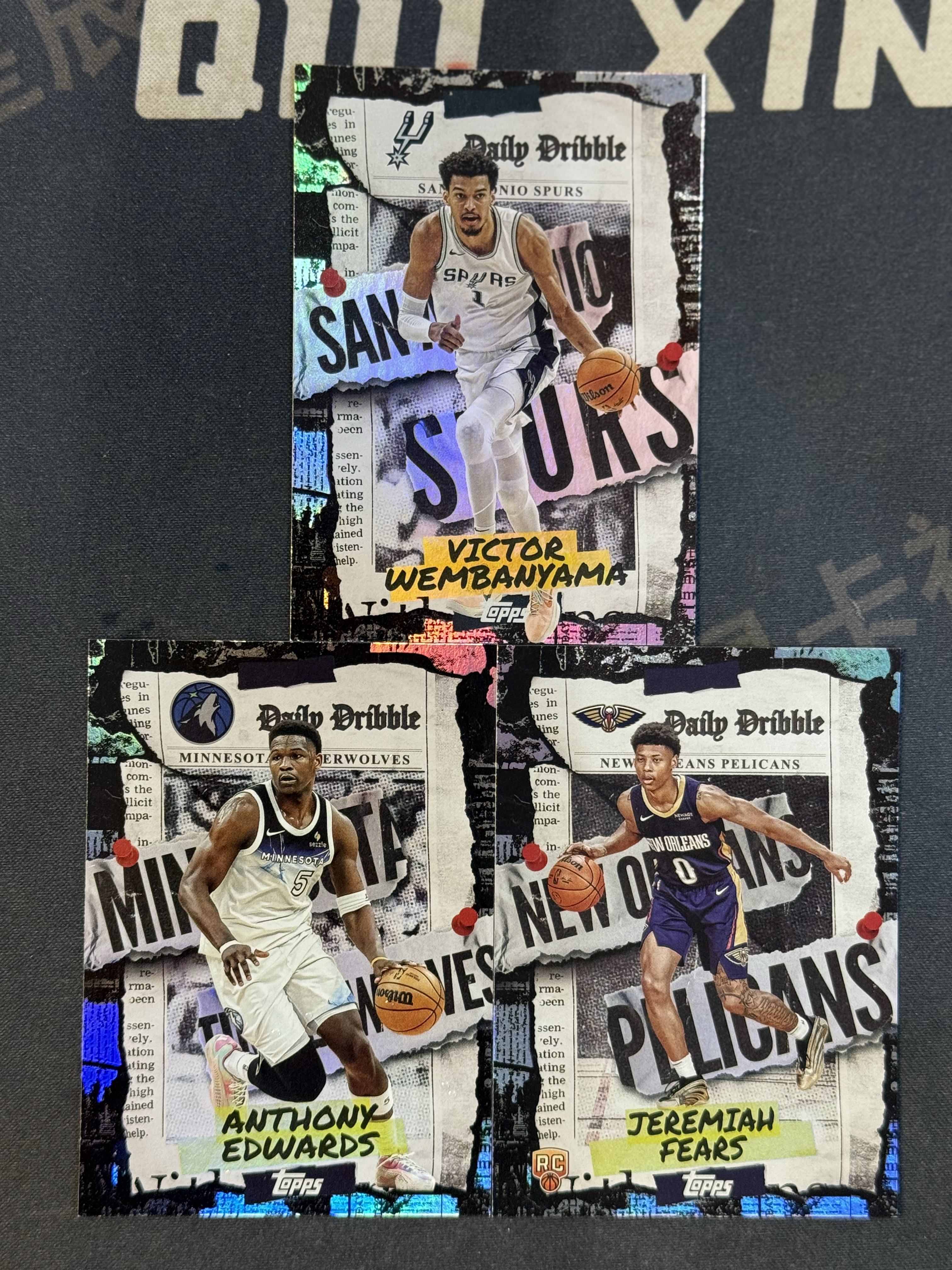 2025 Topps flagship Victor Wembanyama 篮球 维克托 文班亚马 马刺 银折 折射 报纸 运动 进球特卡 爱德华兹 三张打包 卡品如图 鹿