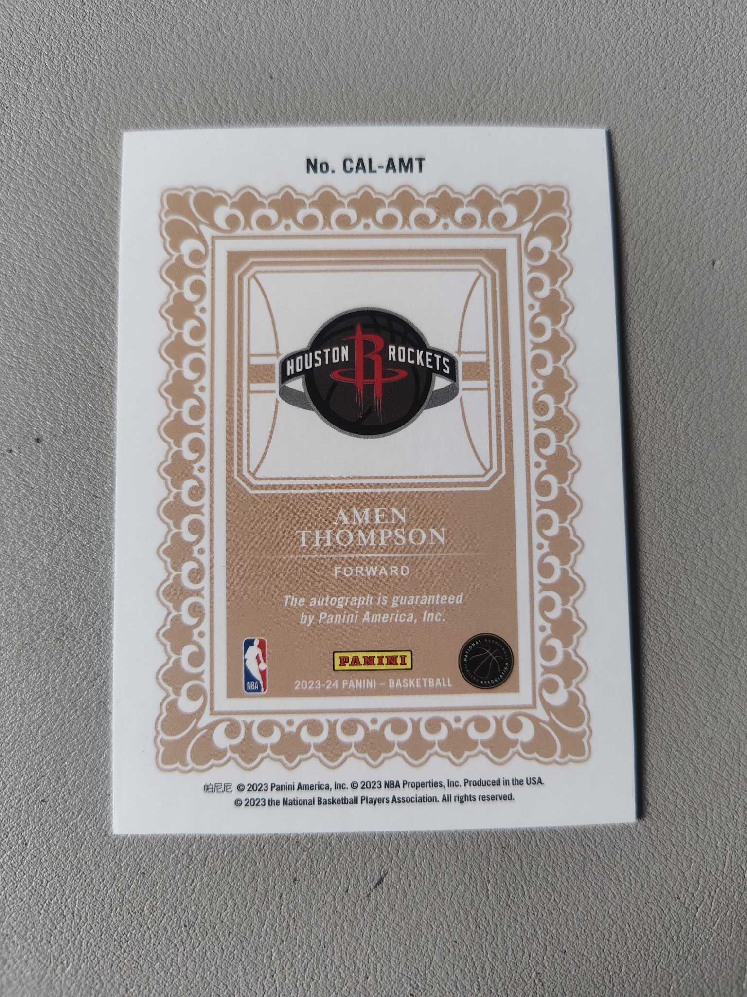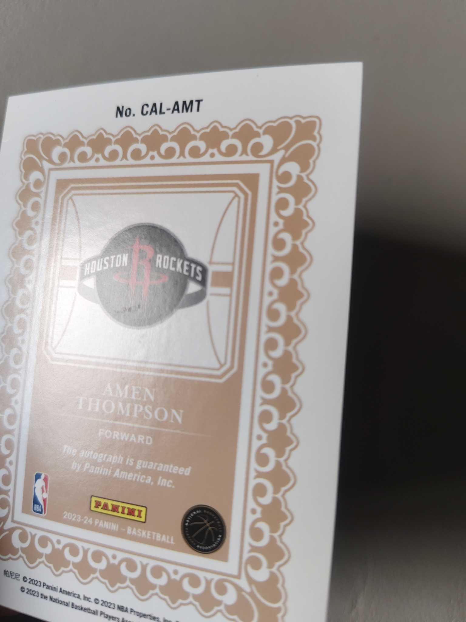 【佩妮拍卖】2023 Panini Calligraphy Amen Thompson RC 阿门 汤普森 休斯敦火箭 美国 新秀签字 书法签 插入卡签 大比例 卡品如图 拍前请阅读描述 夹心1202