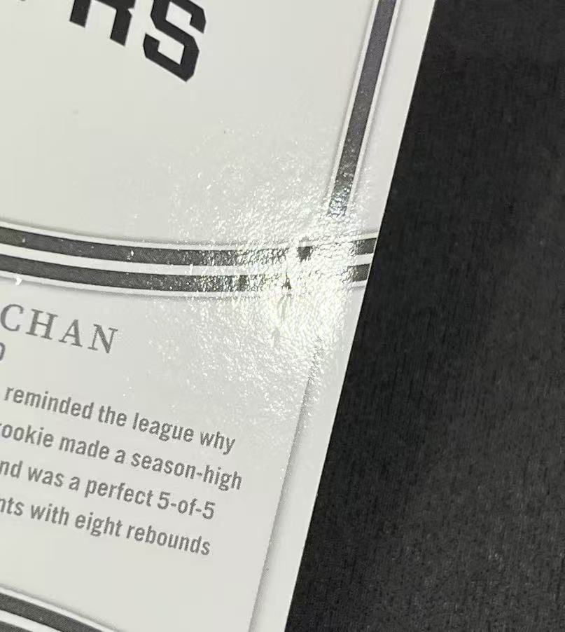 3. 关于品相:参与拍卖前请看清图片卡品,如有瑕疵可查看详情图:国宝imm等系列厚卡,老卡有白边白角属于正常通行品相,镜面卡签有小划痕属于正常通行品相,出厂印刷线属正常通行品相,评级卡砖上的划痕和破损不属于品相问题,折射系列不保证金标,要评级追求金标者请直接购买金标。【多卡打包不保卡品】。