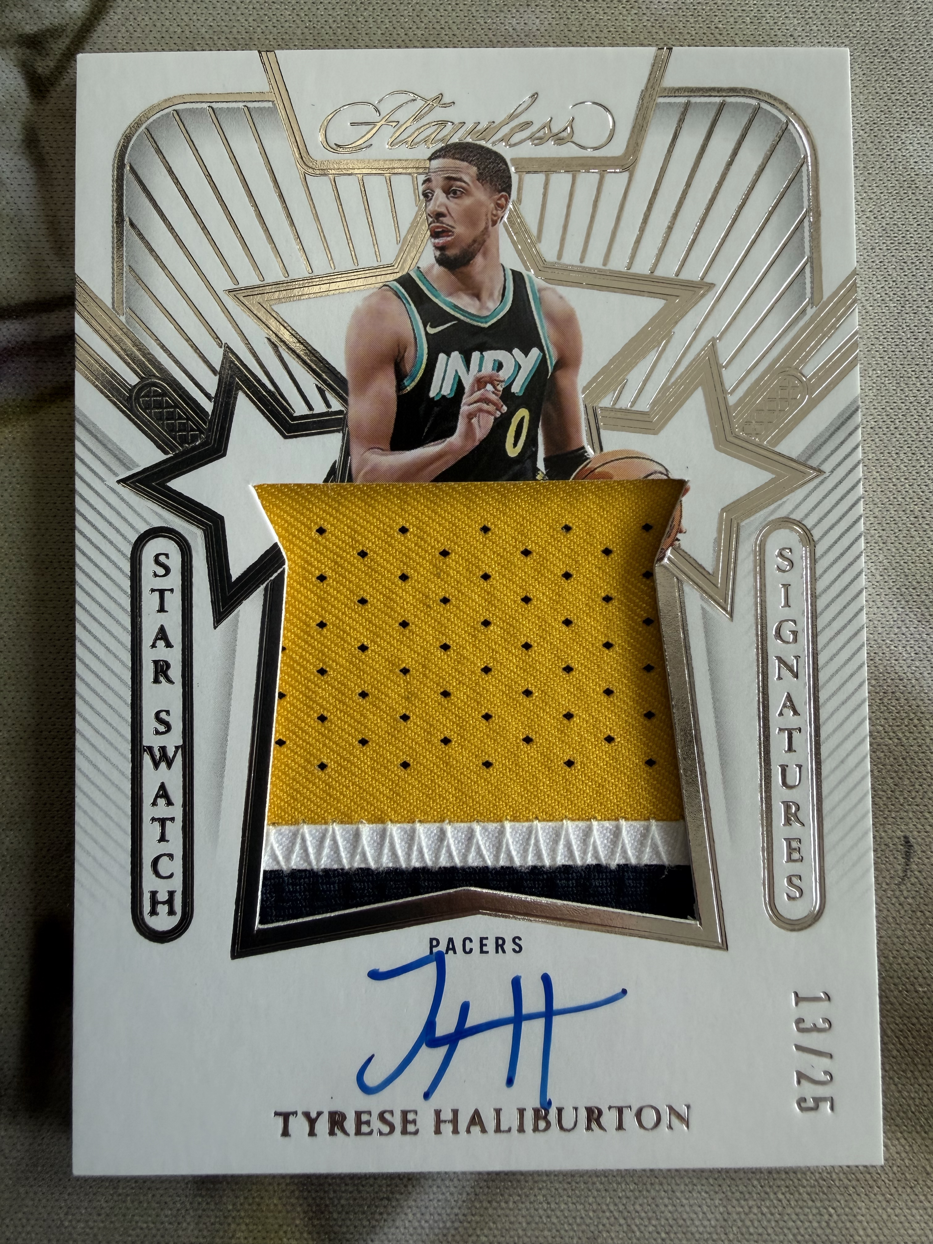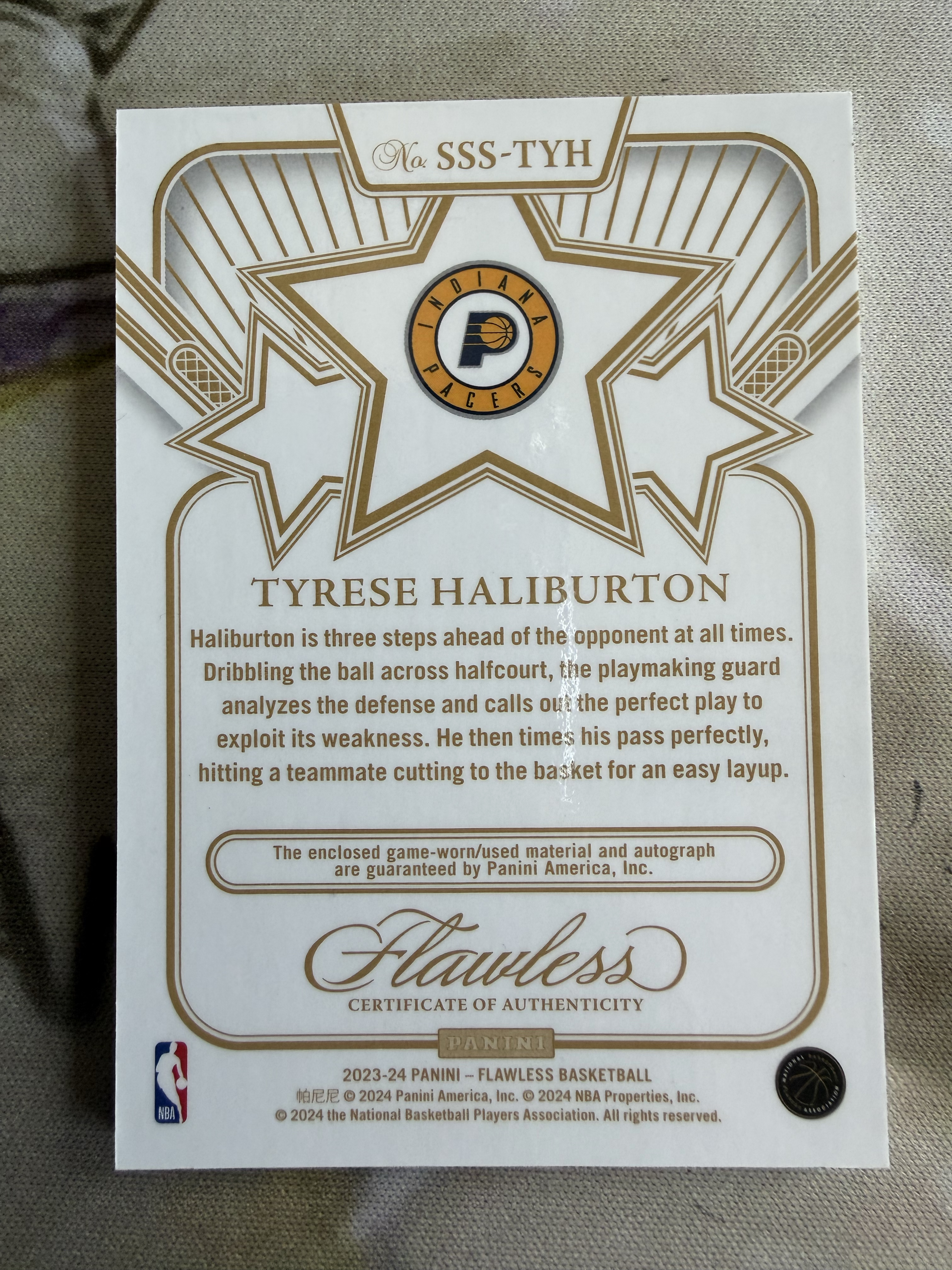 2023-24 Panini Flawless Tyrese Haliburton 手提 步行者 泰雷塞 哈里伯顿 哈利伯顿 大窗SS星星 三色Patch 饱满切割 签字卡签 限量25编 箱货Hit