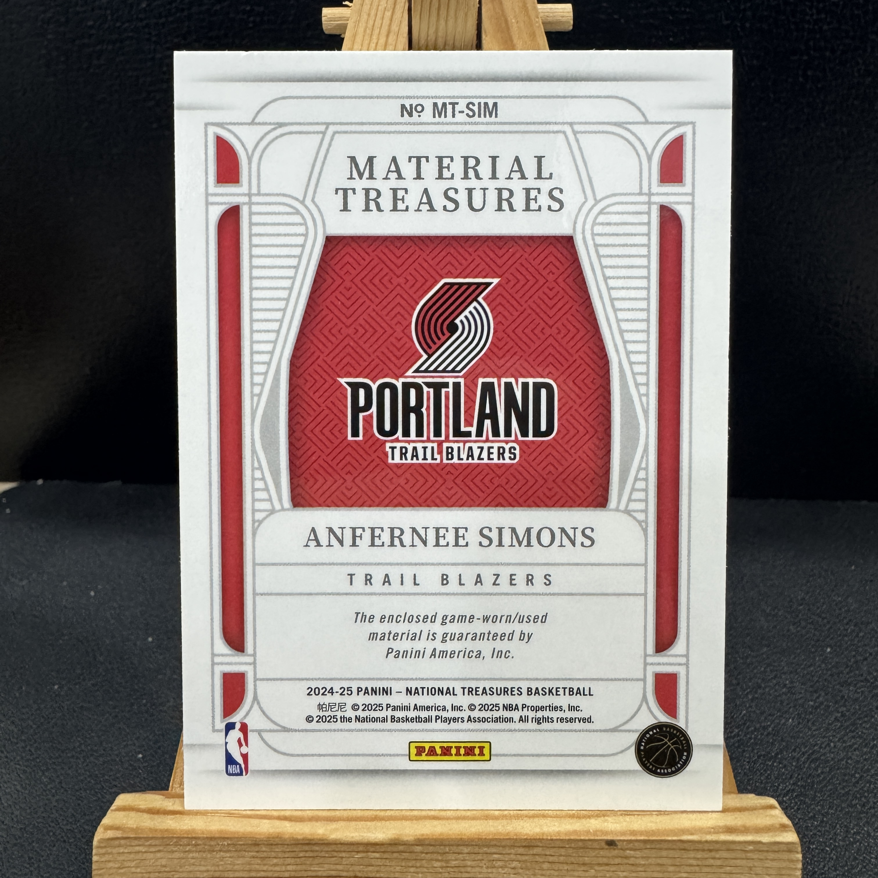 2024-25 Panini National Treasures Anfernee Simons 安芬尼 西蒙斯 25编 patch 国宝 物料 暴力切割 红平行 波特兰 开拓者 【爪卡收卡】
