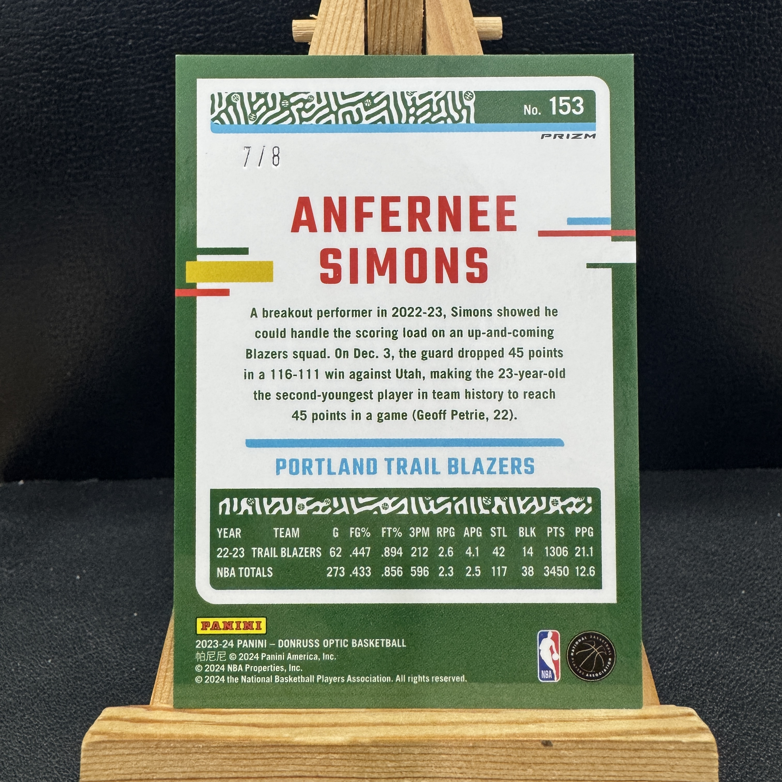 2023-24 Panini Donruss Anfernee Simons 安芬尼 西蒙斯 7/8编 超低编 杜蕾斯 折射 波特兰 开拓者 【爪卡收卡】