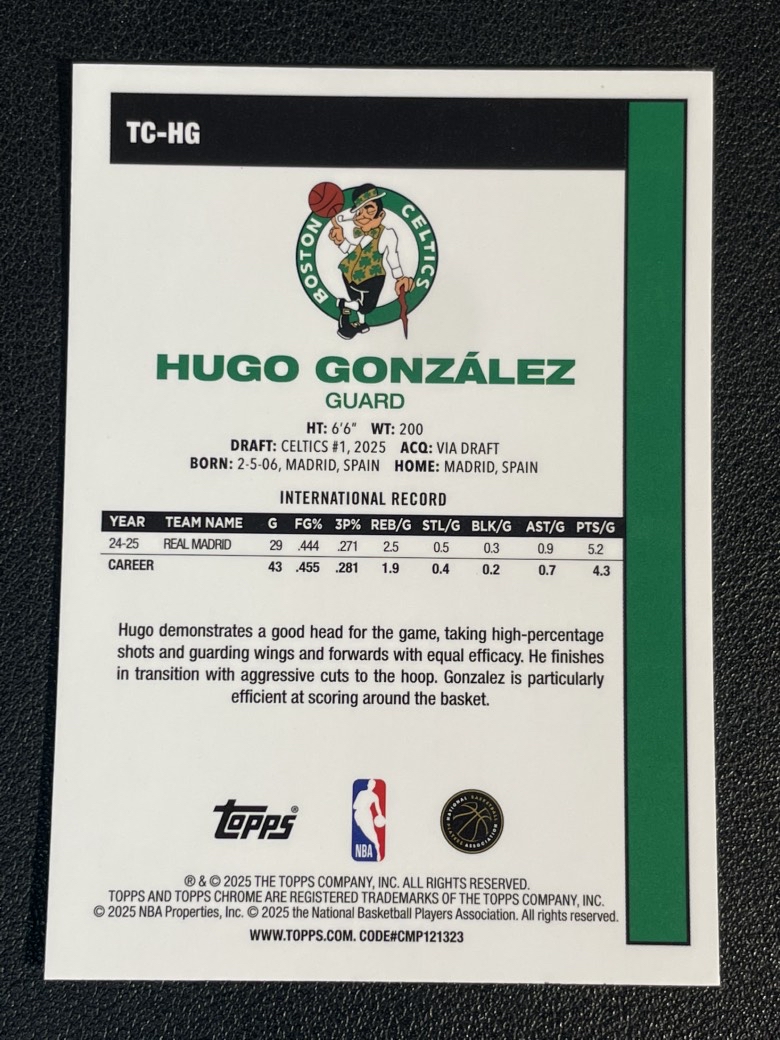 2025 Topps NBA Flagship Hugo Gonzalez RC 431 雨果 冈萨雷斯 凯尔特人 新秀 1980复古 折射 银mojo折 卡品如图 尖叫代拍 pink