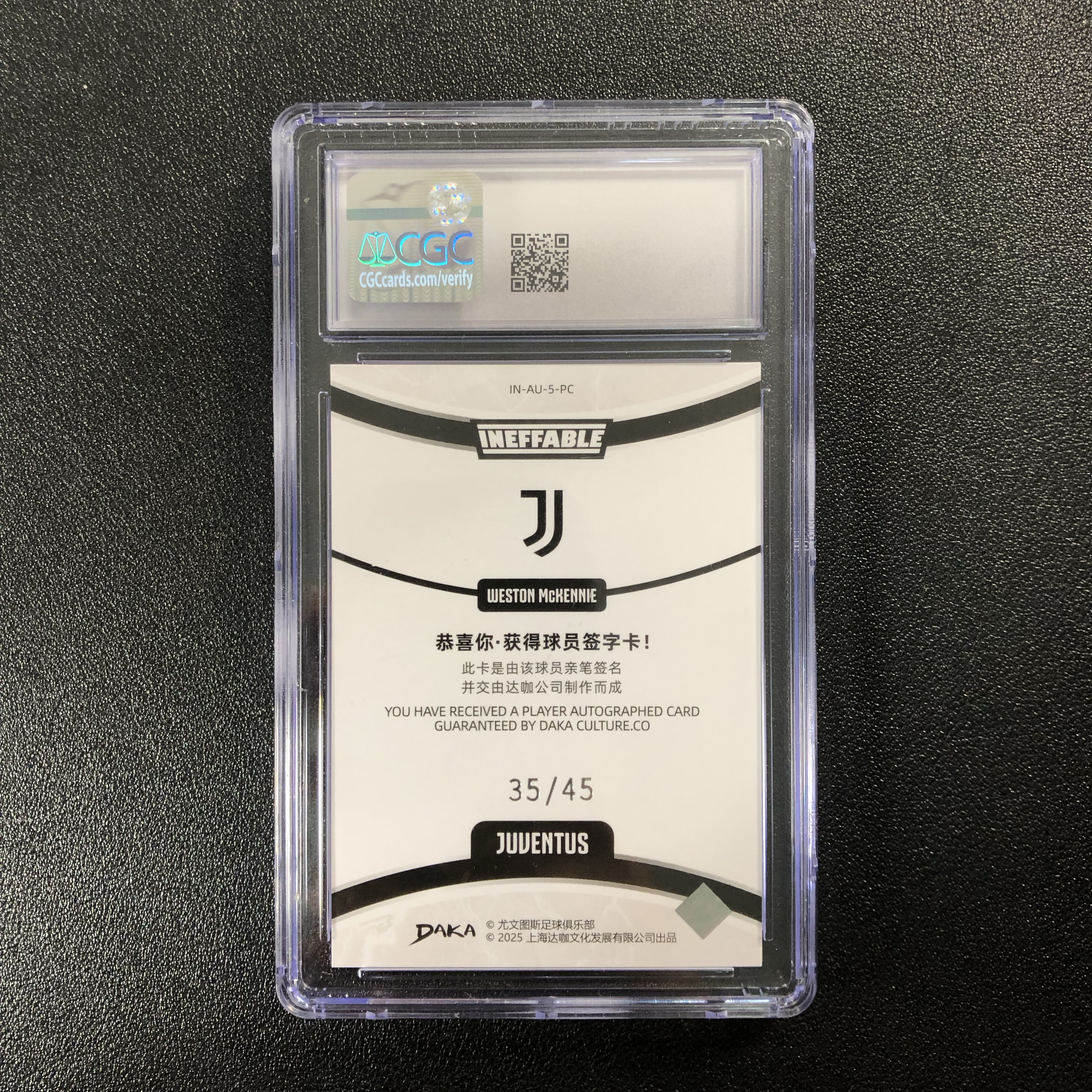 2025 DAKA Juventus One Two Weston McKennie 麦肯尼 尤文高端队盒 完美沙盒签字 限量35/75编 美国主力中场 CGC10分 满分!卡品如图收藏必备(姜不听)