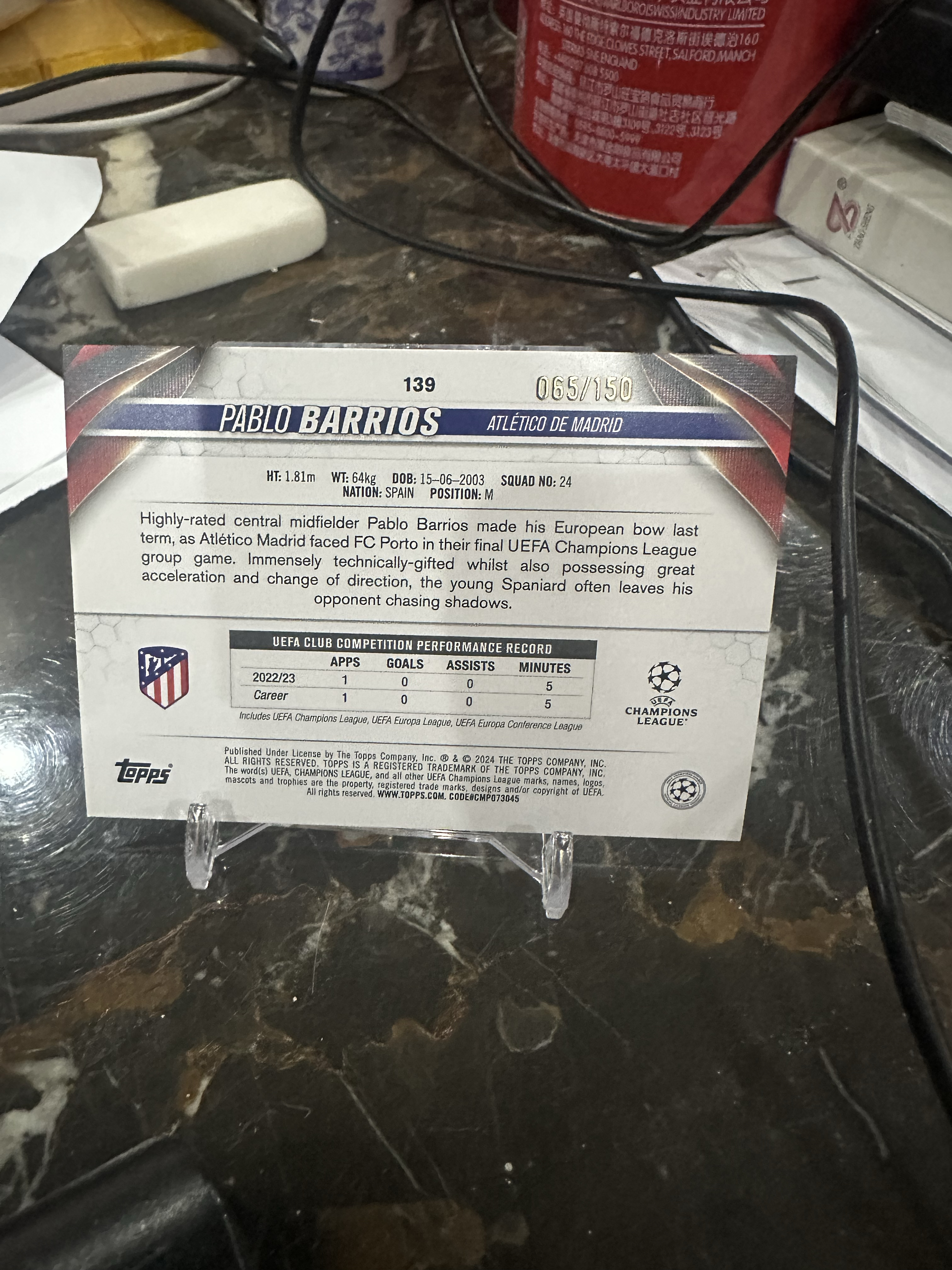 2024 Topps Chrome Pablo Barrios 欧冠 碧玉 巴勃罗 巴里奥斯 马德里竞技 150编 新春折 祥云折 带编 实卡精美 收藏必备 卡品如图 西班牙🇪🇸 亚马尔