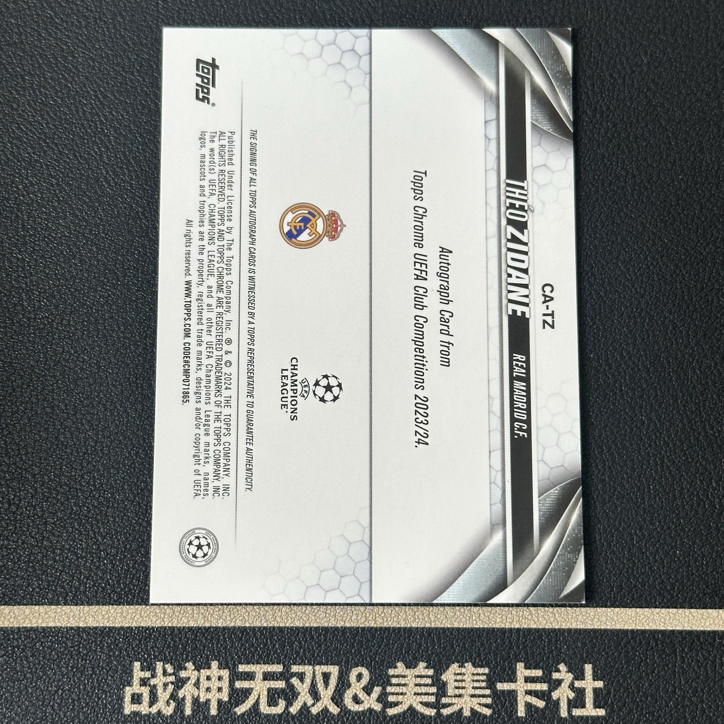 2023-24 Topps Chrome THEO ZIDANE 欧冠 西甲 皇家马德里 皇马 泰奥 齐达内 新秀RC 绿折 99编 签字 瑕疵 战神无双(#12.1风驶过吗)