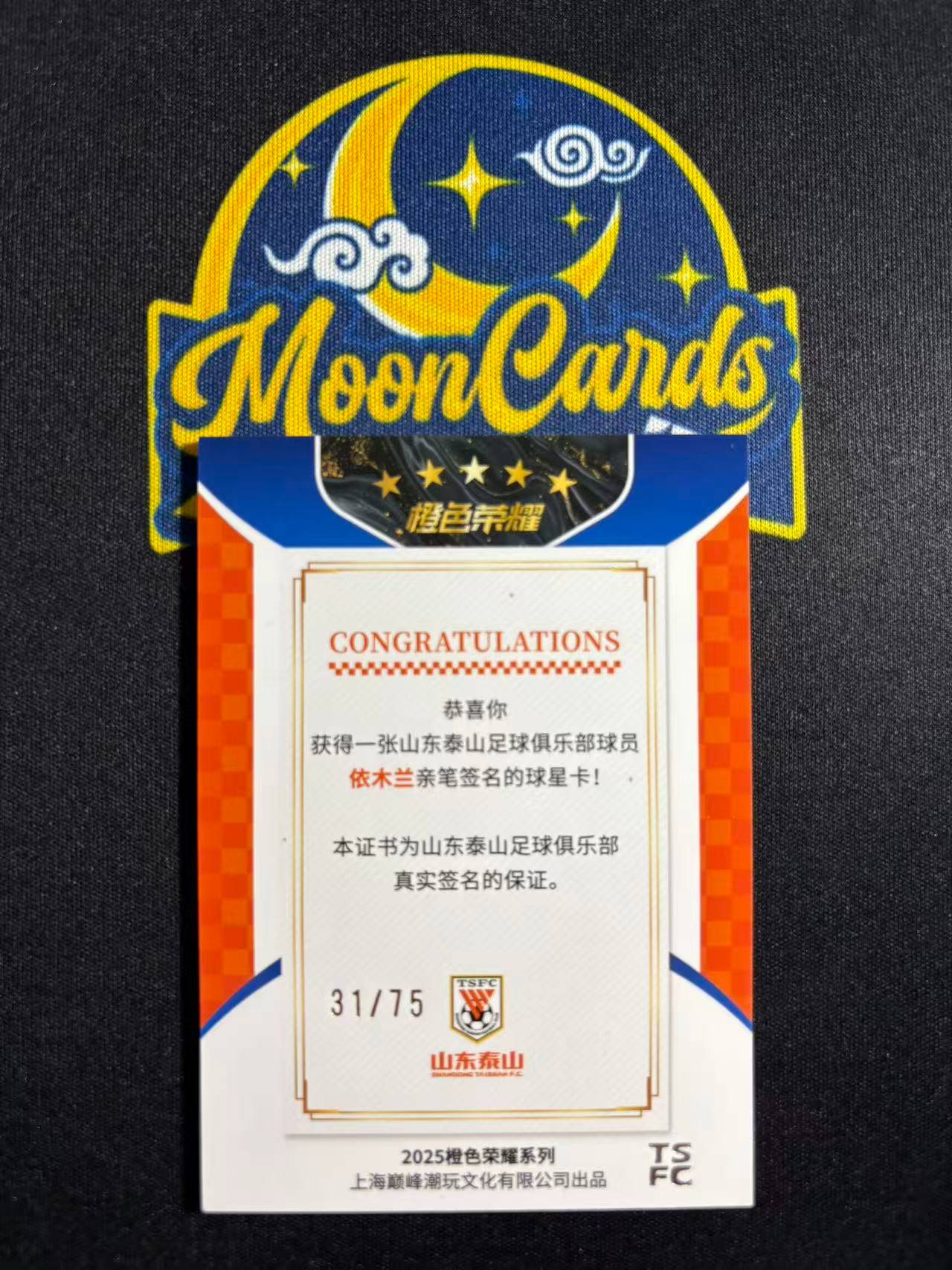 【梦卡拍卖】2025 巅峰潮玩 橙色荣耀 泰山队盒 山东鲁能 依木兰 签字 卡签 31/75编 #DD# 乐哥