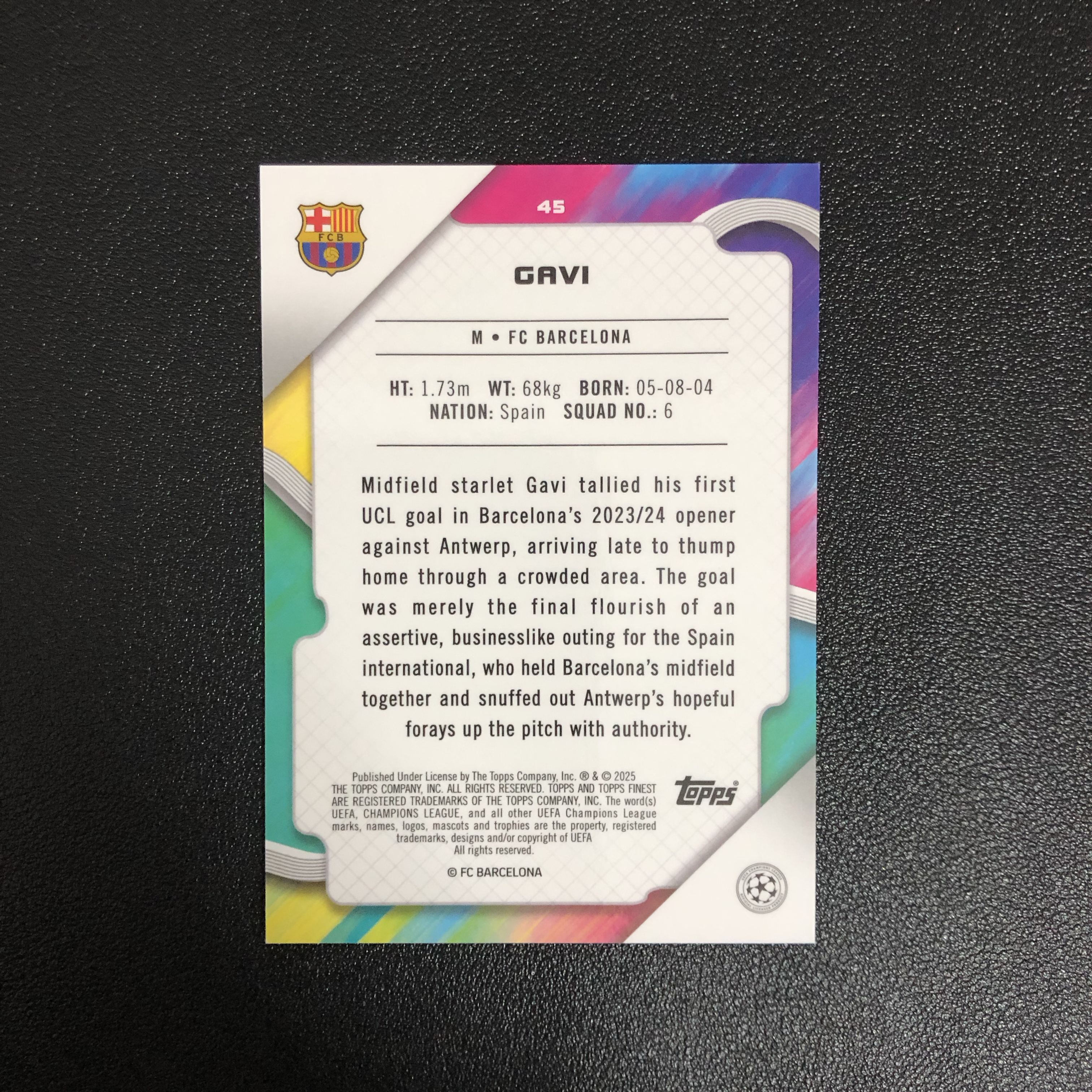 2025 Topps Finest GAVI 巴塞罗那 巴萨 加维 /50编 玫瑰金碎钻折 带编 折射 欧冠 卡品如图 默认微瑕 收藏必备(fhz)