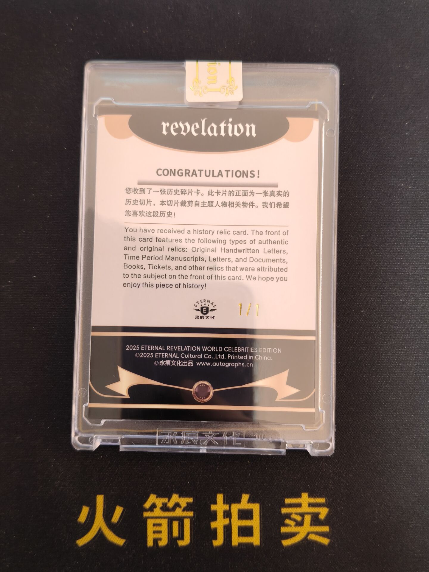 【火箭拍卖 截标预付82%】2025 eternal revelation 永痕文化 启示录 世界名人收藏卡 希区柯克 主题人物相关物件 真实历史切片 切割遗迹卡 黑折 折射 1/1编 仅此一张 专收必备 瑕疵看图「途安」1204D03兿