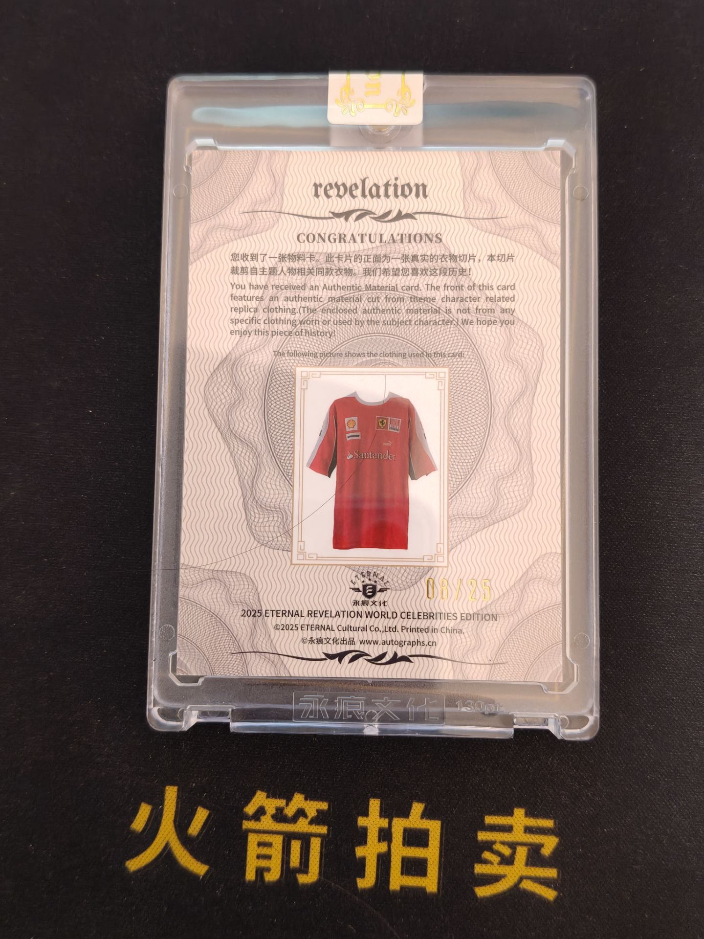 【火箭拍卖 截标预付82%】2025 eternal revelation 永痕文化 启示录 世界名人收藏卡 迈克尔 舒马赫 主题人物相关物件 真实历史切片 物料 实物 红折 折射 8/25编 专收必备「途安」1204D03兿