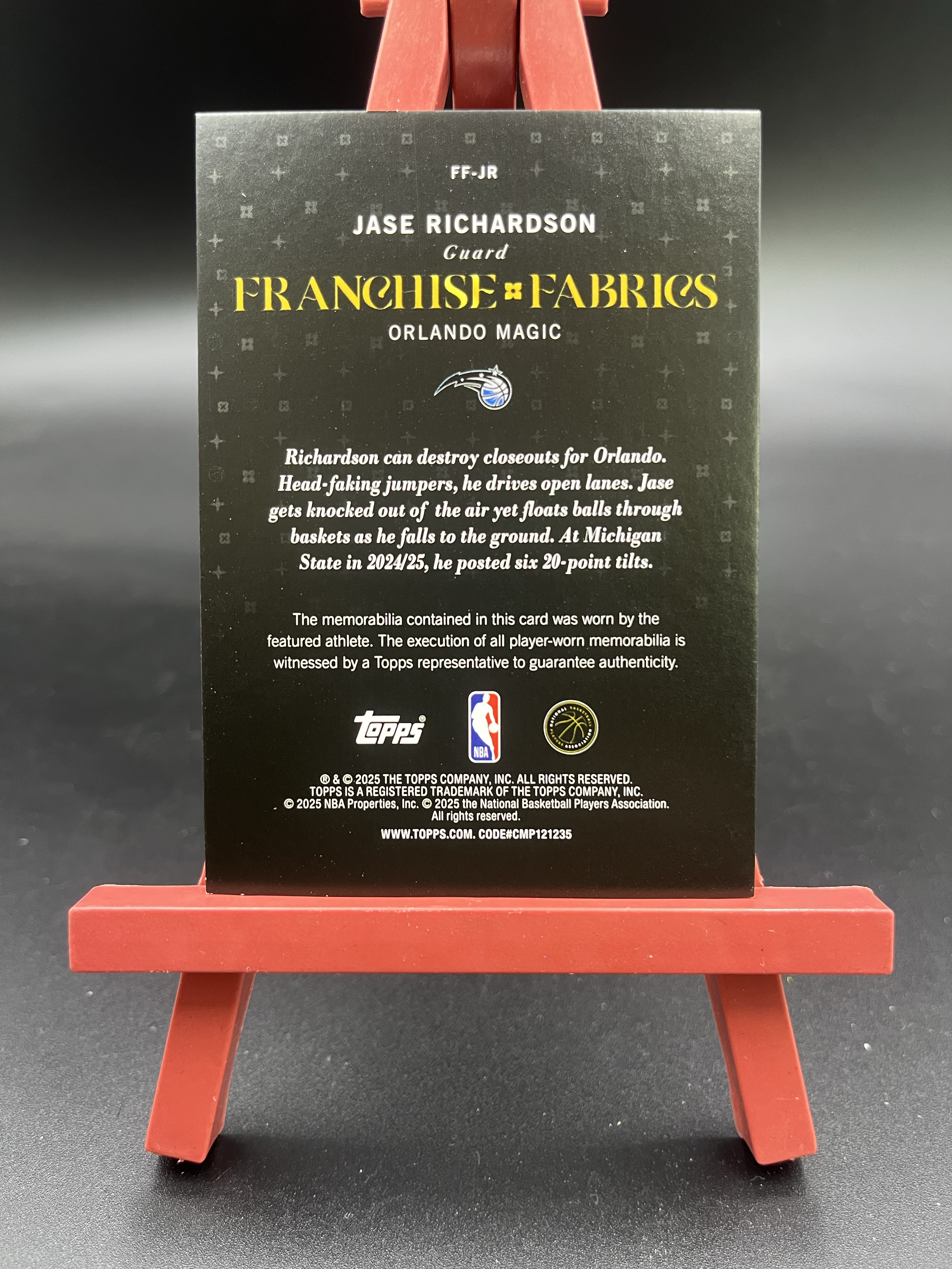 2025 Topps flagship Jase Richardson 杰斯 理查德森 新秀 RC 双色球衣物料切割 魔术 卡品如图【优质物料专场】04WZ
