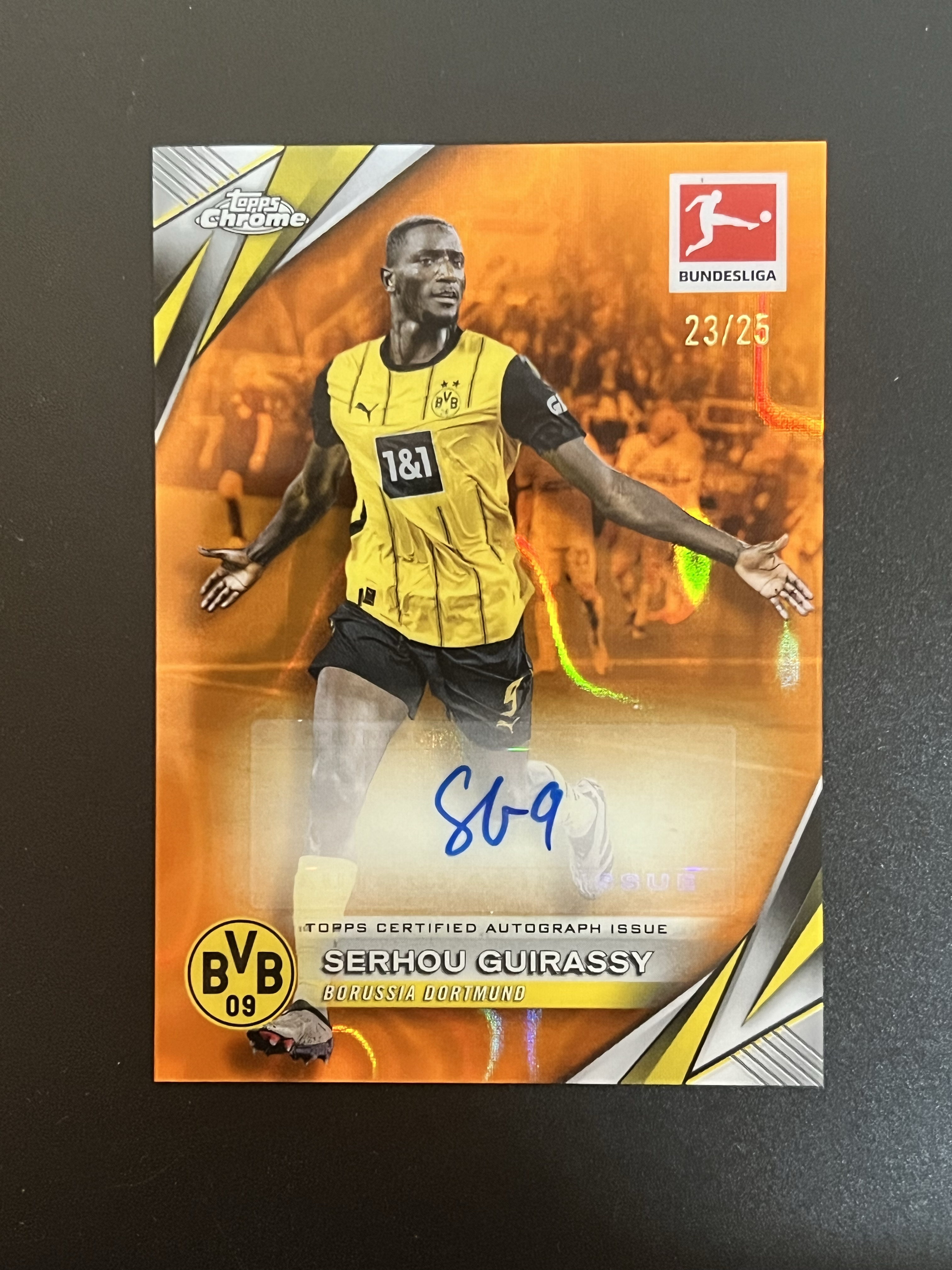 2025 Topps Chrome Serhou Guirassy 德甲TC 多特蒙德 塞罗 吉拉西 签字 25编 橙熔岩折 签字 收藏必备