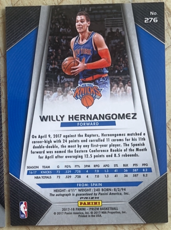 2017-18 Panini Prizm Willy Hernangomez 尼克斯 维利 埃尔南戈麦斯 银折 签字 专收必备 瑕疵看图