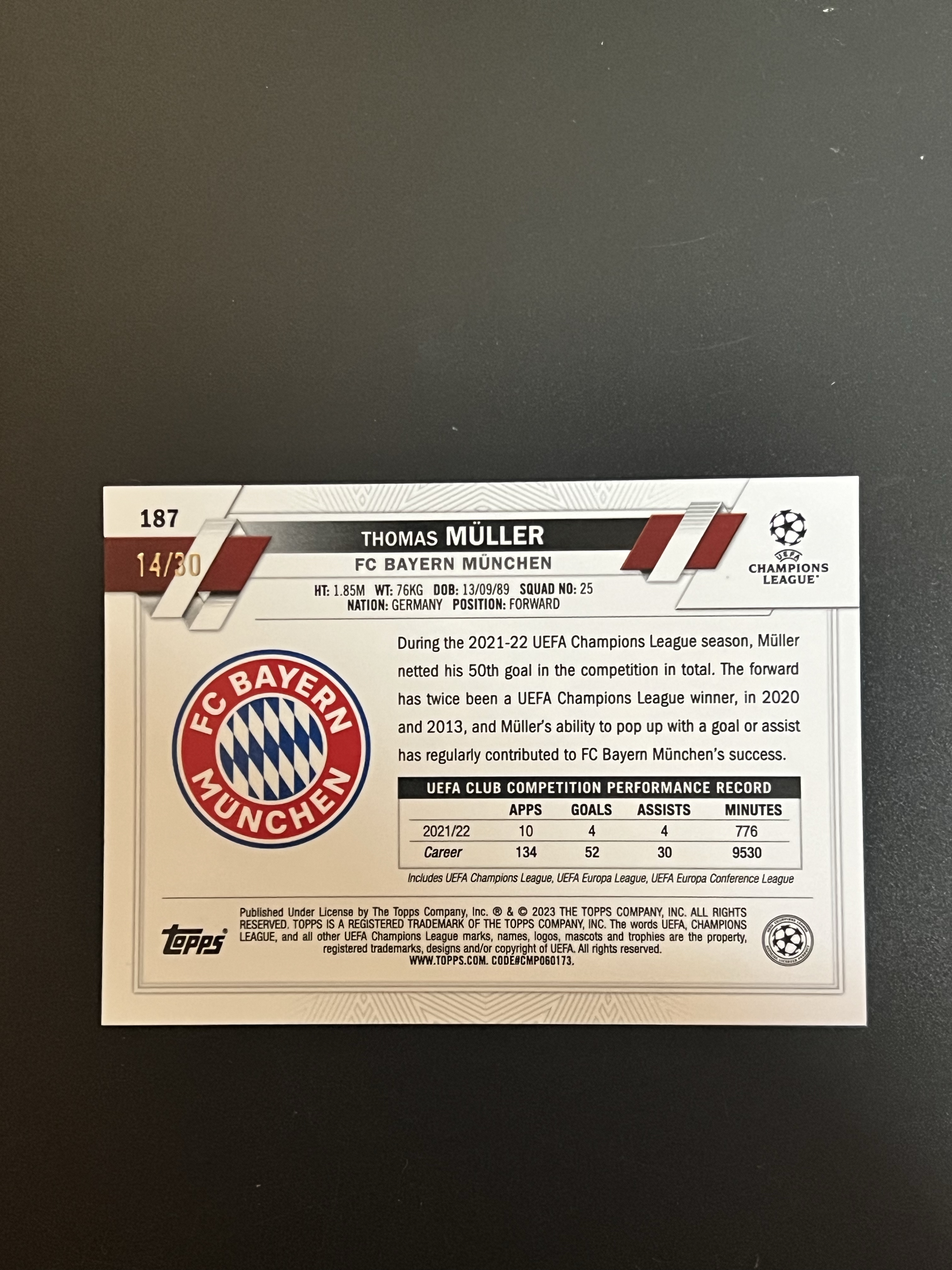 2023 Topps Chrome Thomas Muller 欧冠 拜仁慕尼黑 托马斯 穆勒 30编 黑地震折 收藏必备