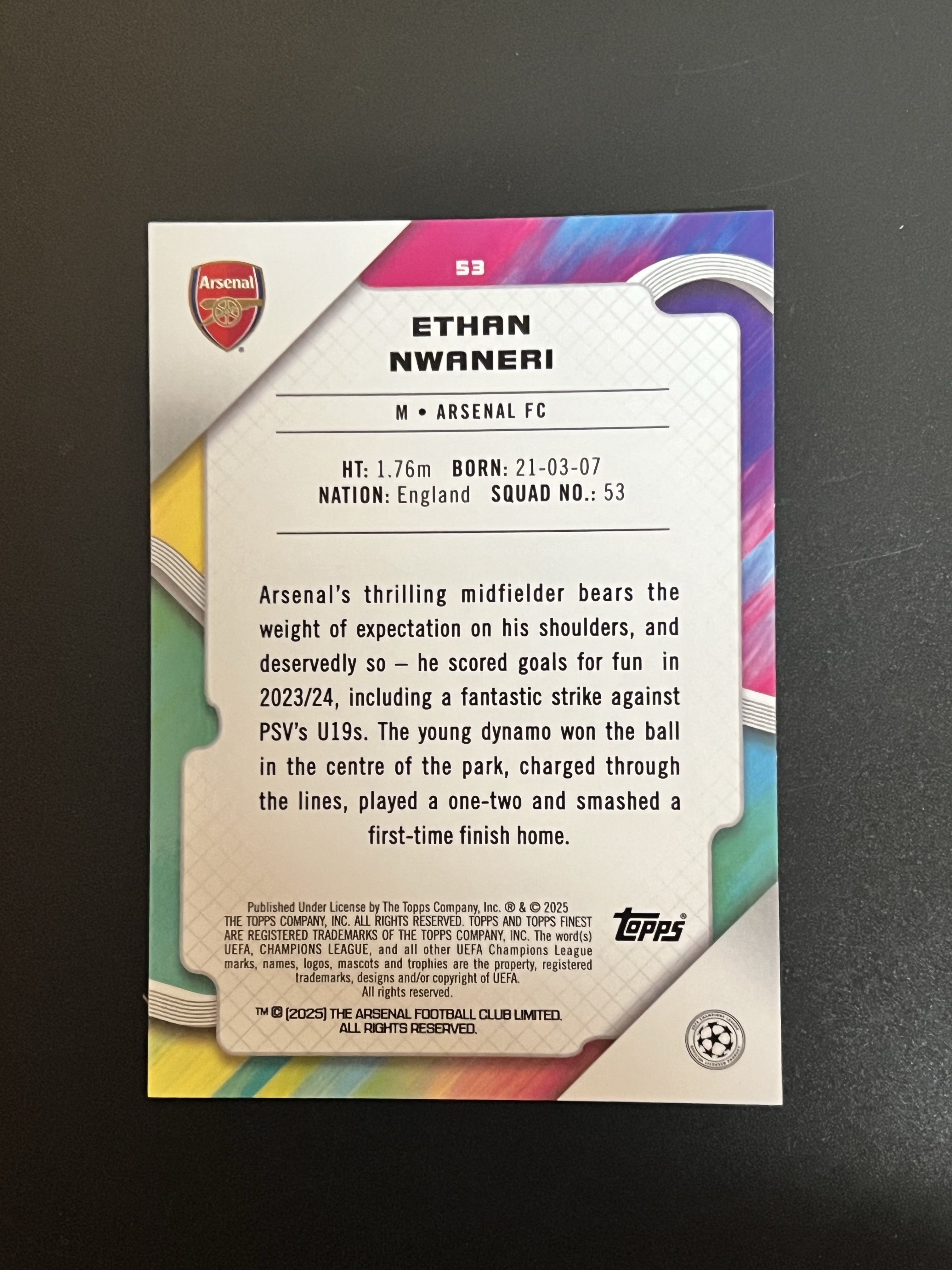 2025 Topps Finest Ethan Nwaneri RC 欧冠 阿森纳 新秀 恩瓦内里 125编 收藏必备