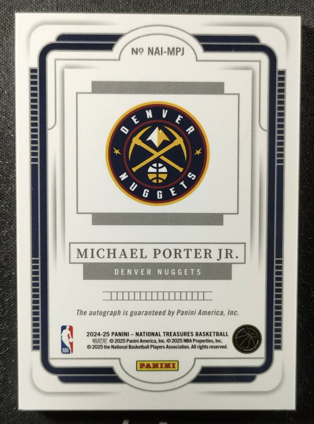 2024-25 Panini National Treasures Michael Porter Jr. 国宝 小迈克尔 波特 掘金 National Archives Ink 卡签签字 /75编