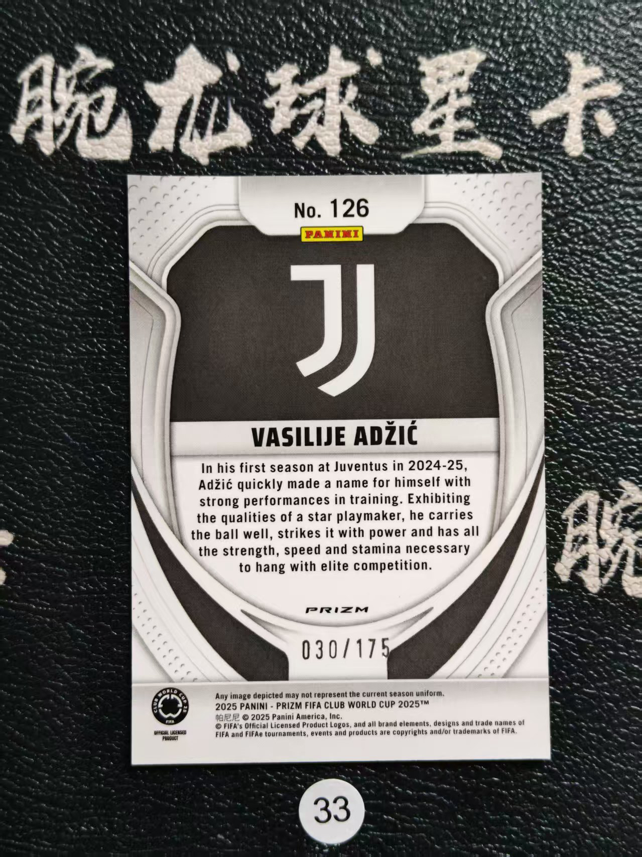2025 【腕龙拍卖 接代卖】 腕龙夏总AW3 Panini Prizm 世俱杯 PZ 阿季奇 尤文图斯 RC新秀 蓝碎冰折 30/175编 VASILIJE ADZIC 卡品如图 收藏必备