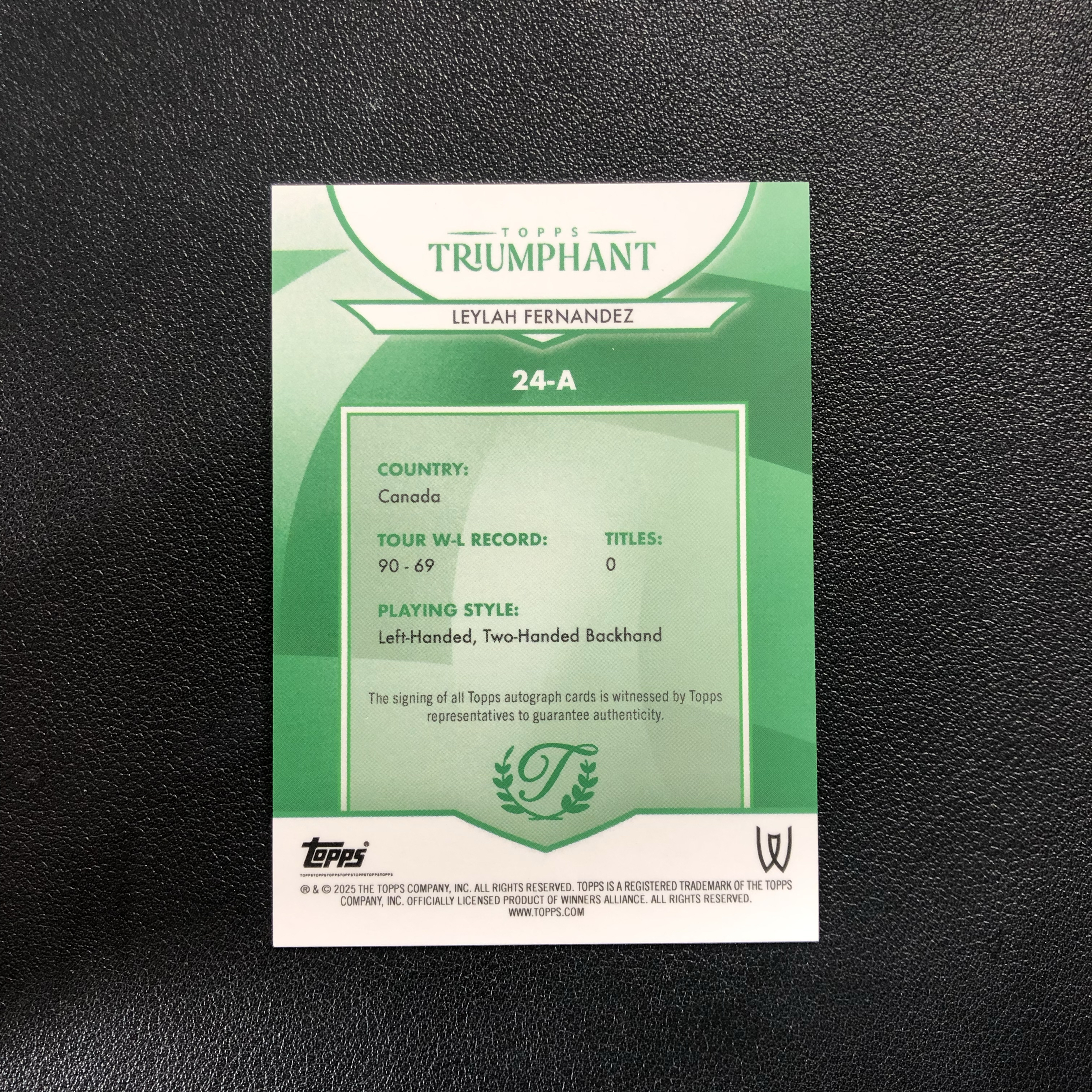 2025 Topps Trimuphant Leylah Fernandes 网球凯旋系列 莱拉-费尔南德斯 78/99编 单人签 签字 加拿大 法网青少年组女单冠军 卡品如图(wzx)