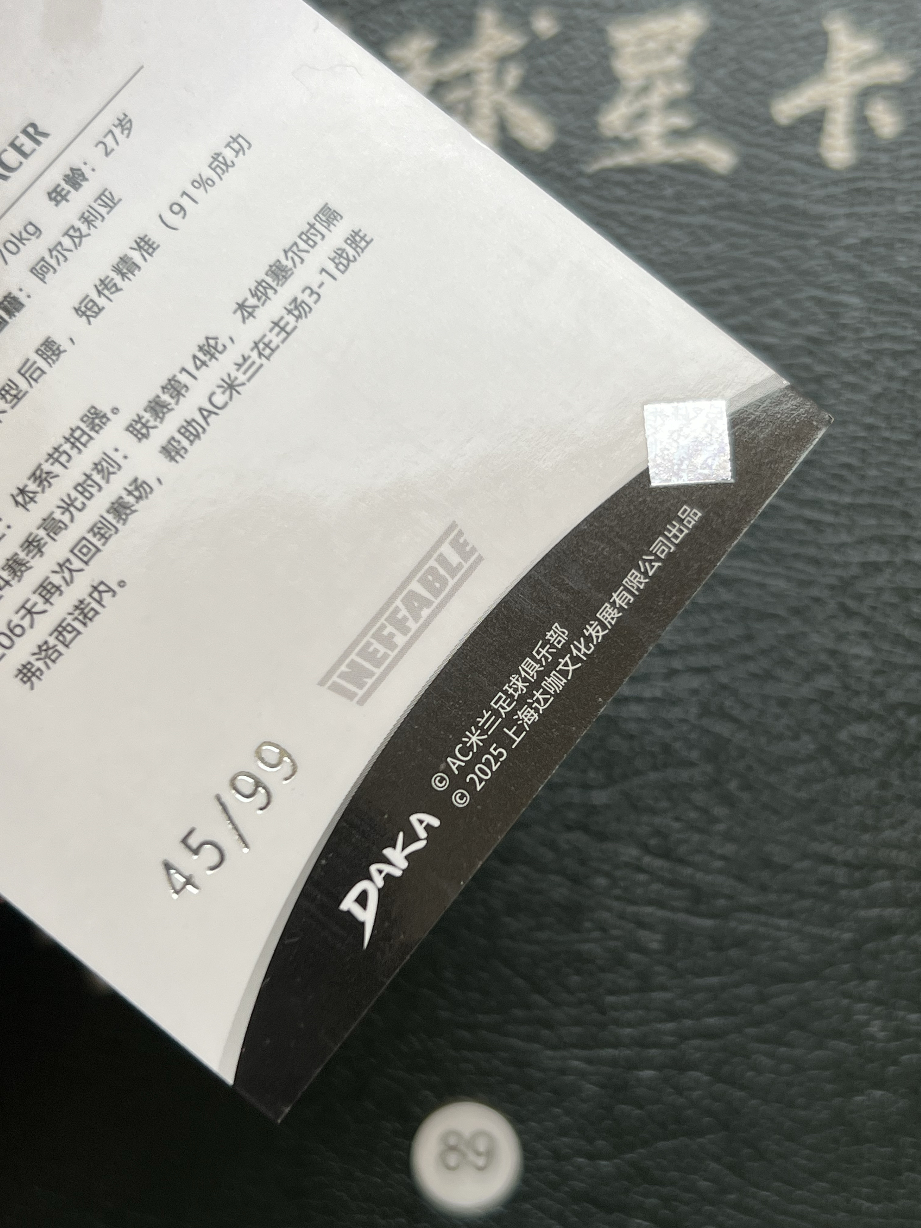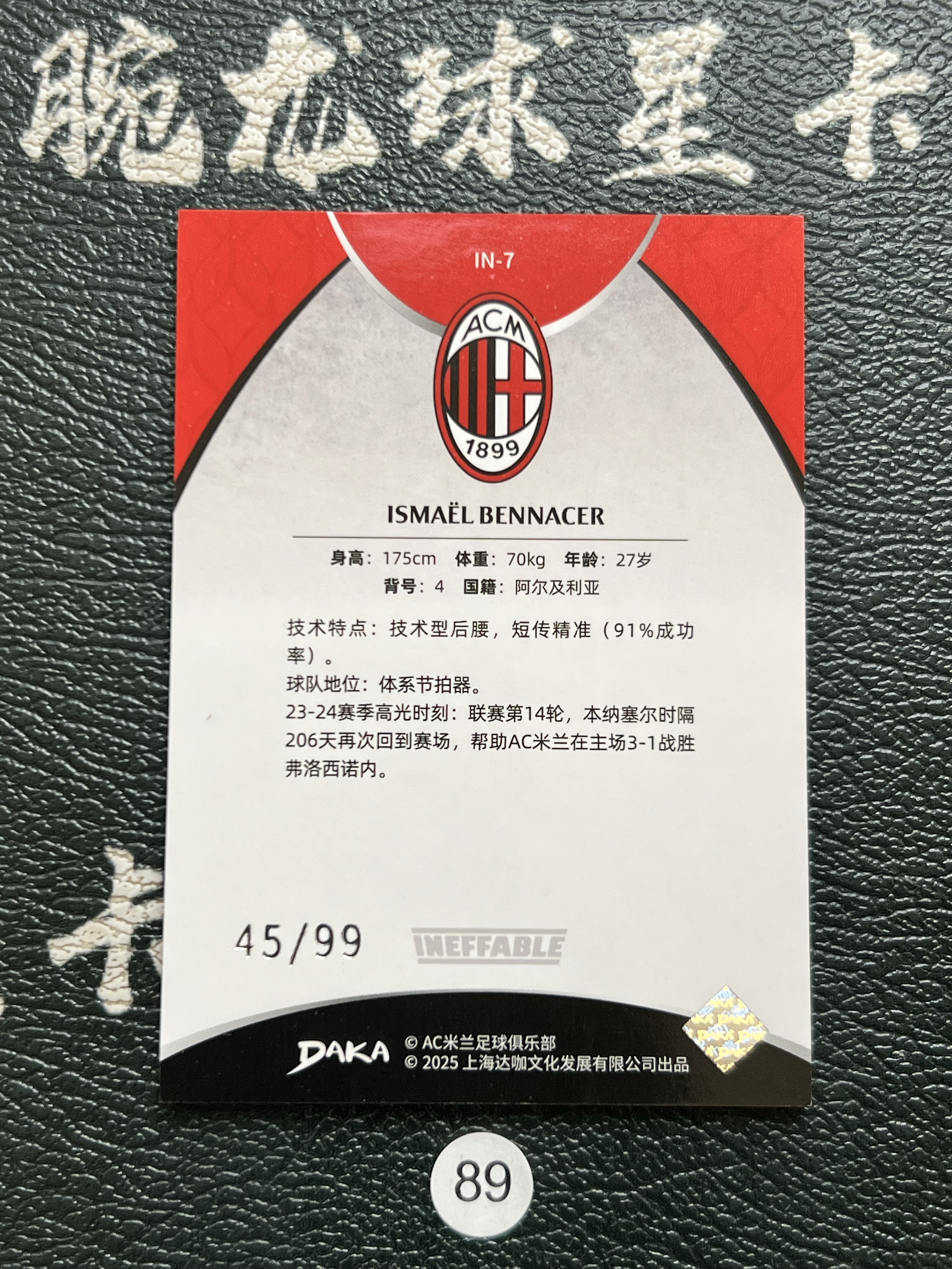 2025 【腕龙拍卖 接代卖】 腕龙心系AX2 DAKA 达卡 米兰队盒 AC米兰 本纳塞尔 45/99编 ISMAËL BENNACER 卡品如图 收藏必备