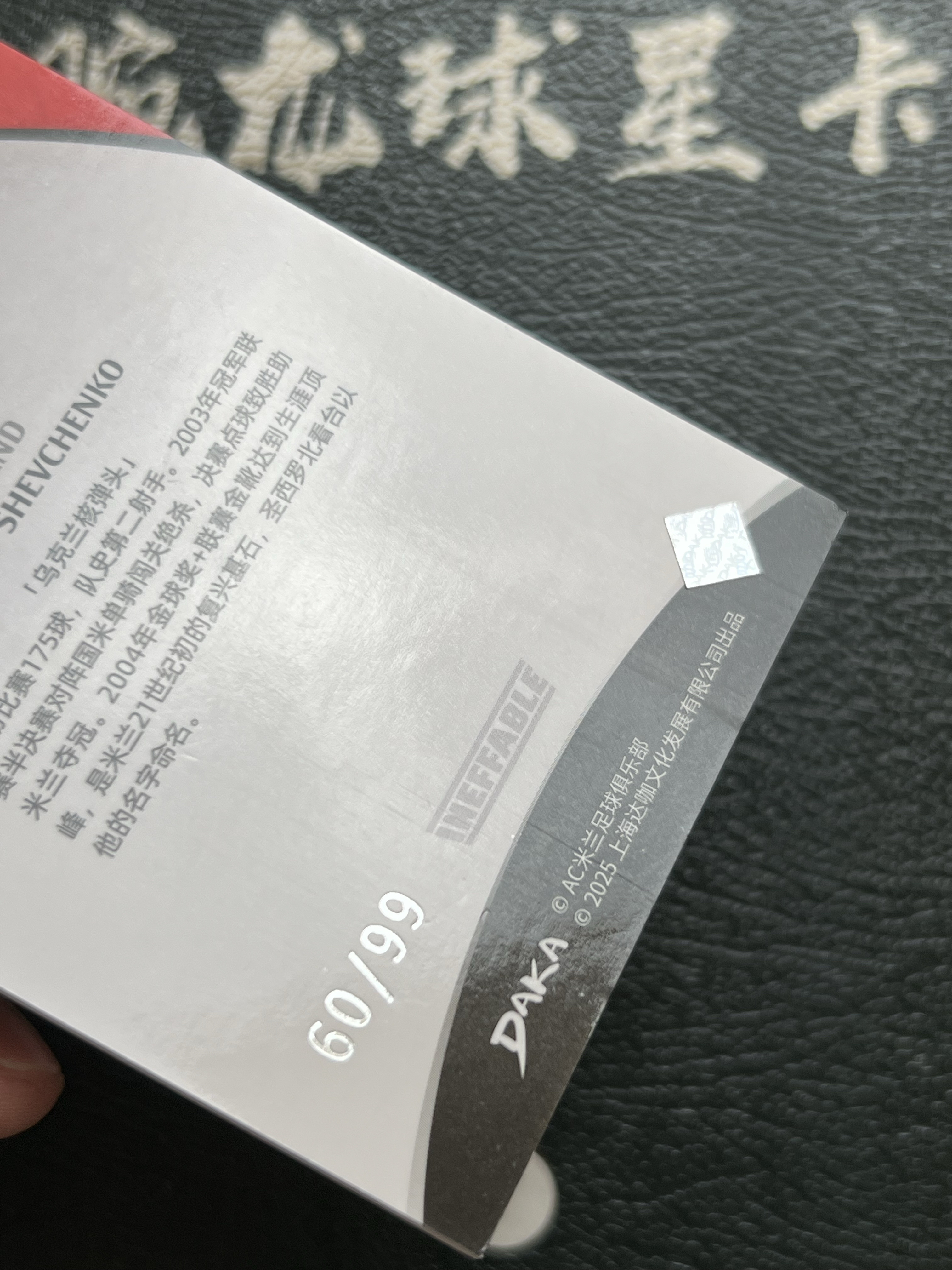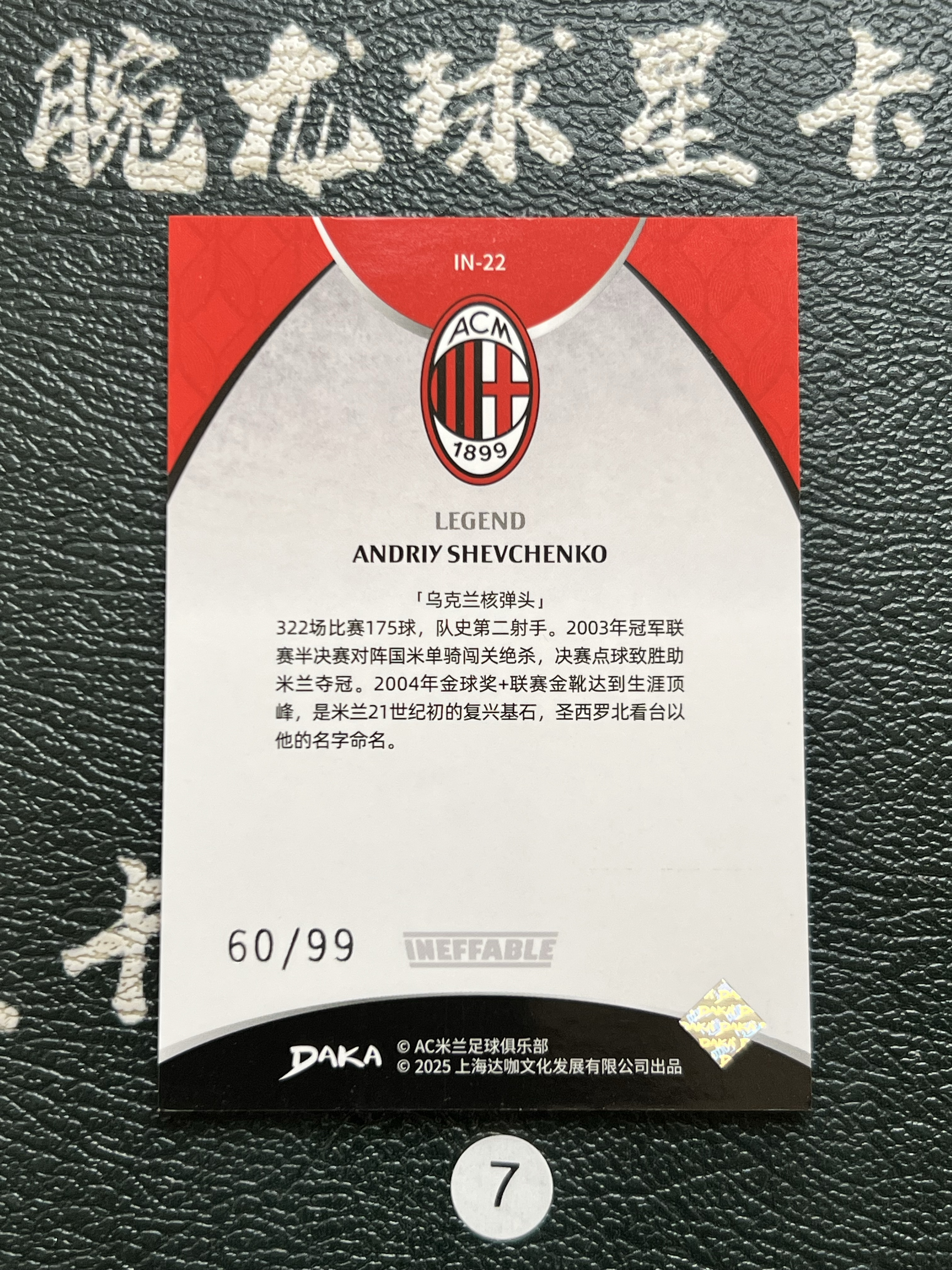 2025 【腕龙拍卖 接代卖】 腕龙心系AX2 DAKA 达卡 米兰队盒 AC米兰 舍普琴科 舍甫琴科 60/99编 ANDRIY SHEVCHENKO 卡品如图 收藏必备