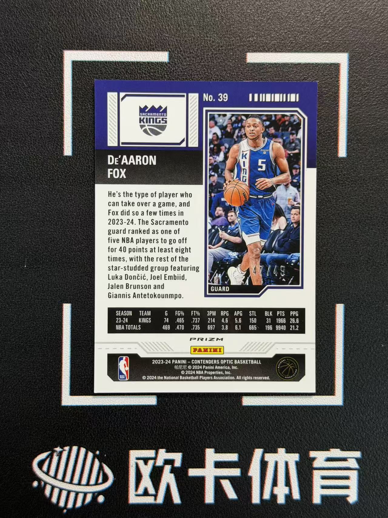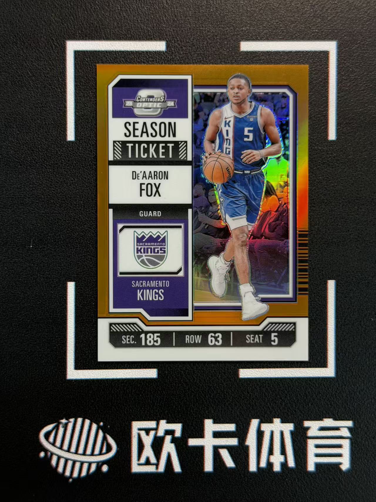 2023-24 Contenders Optic De'Aaron Fox 【欧卡体育】球票op 达龙 福克斯 小狐狸 /49编 橙折 国王 卡品如图(YDD)