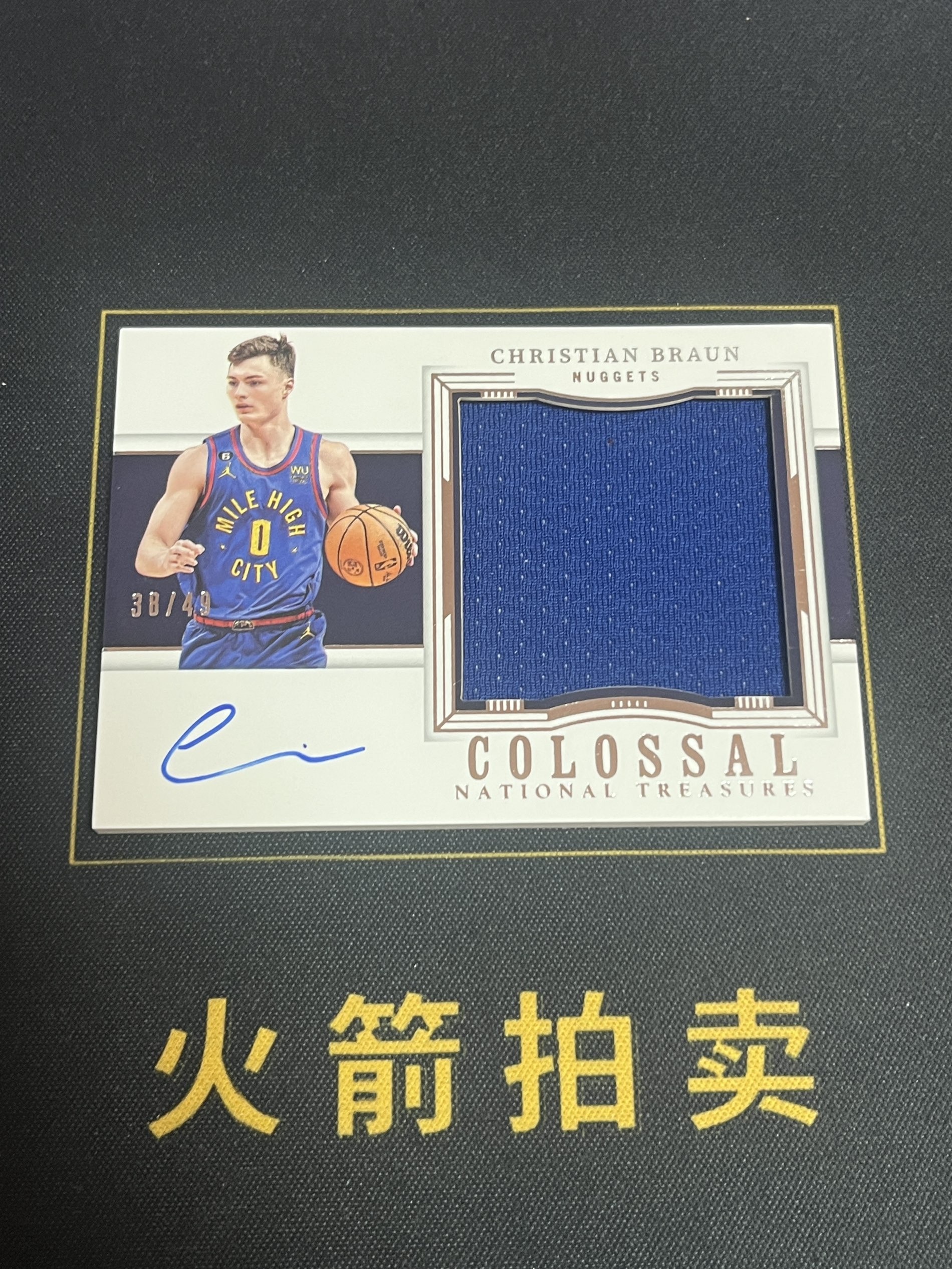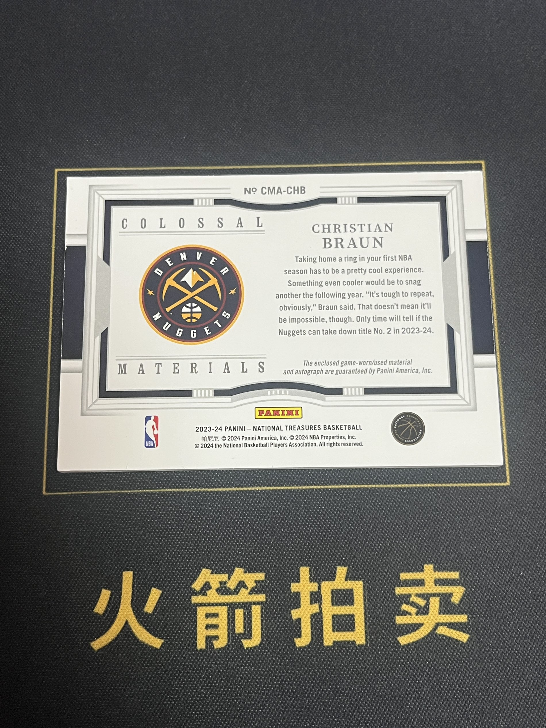 【火箭拍卖 截标预付82%】2023-24 panini National Treasures christian braun 国宝 掘金 克里斯蒂安 布劳恩 签字 卡签 球衣 物料 38/49编 瑕疵看图「雀缘」1207D02祺