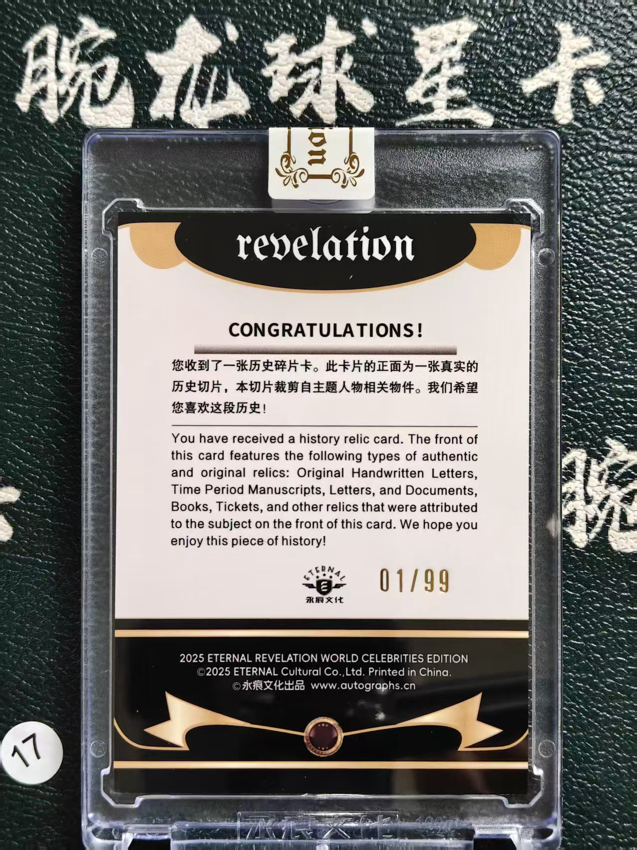 2025 【腕龙拍卖 接代卖】 腕龙JackieAW9 ETERNAL REVELATION 永痕文化 启示录系列 历史名人切割 梭罗 Thoreau 历史碎片卡 1/99编 首编 原封砖