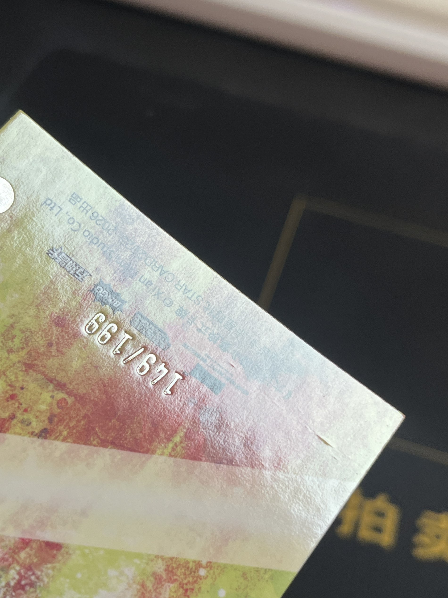 卡品墨迹如图所示,请认真看图后再谨慎出价。不接受任何艺术家买卡,(包括但不限于在通行卡品里挑瑕疵索要赔偿或退卡等)一律拉黑投诉处理。所卖卡未经描述均为通行品,可能会有细微瑕疵;打包标小卡可能会有不同程度的瑕疵;评级卡壳和原封砖的磨损不包含在卡品范围内;交换板和积分只邮寄不发码;介意者请勿参拍!参拍即视为已读同意!