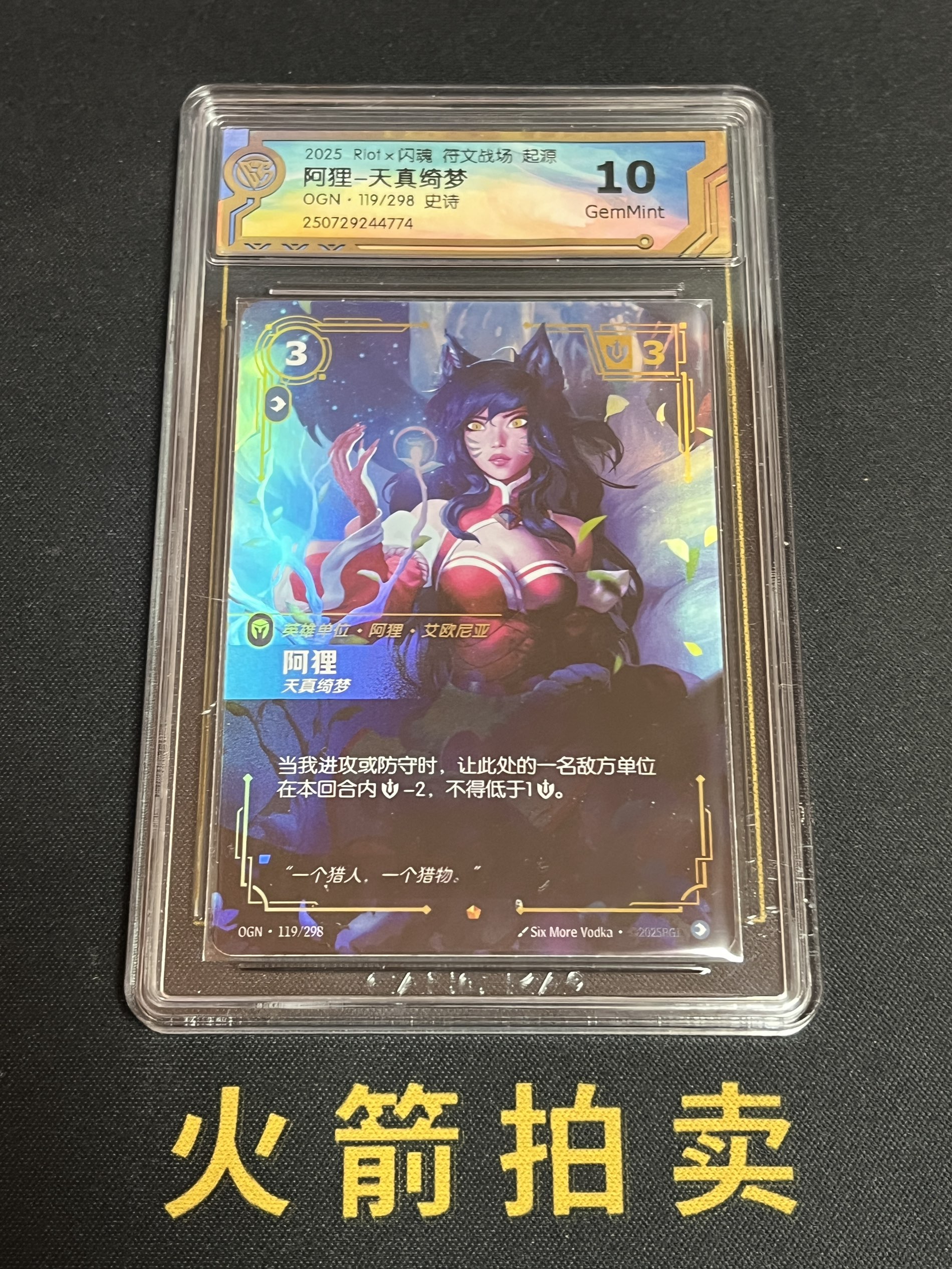 【火箭拍卖 截标预付82%】2025 riot 闪魂 符文战场 起源 阿狸 天真绮梦 ogn 119/298 史诗 闪卡 CCG10 评级 专收必备「意愿」1208D06祺