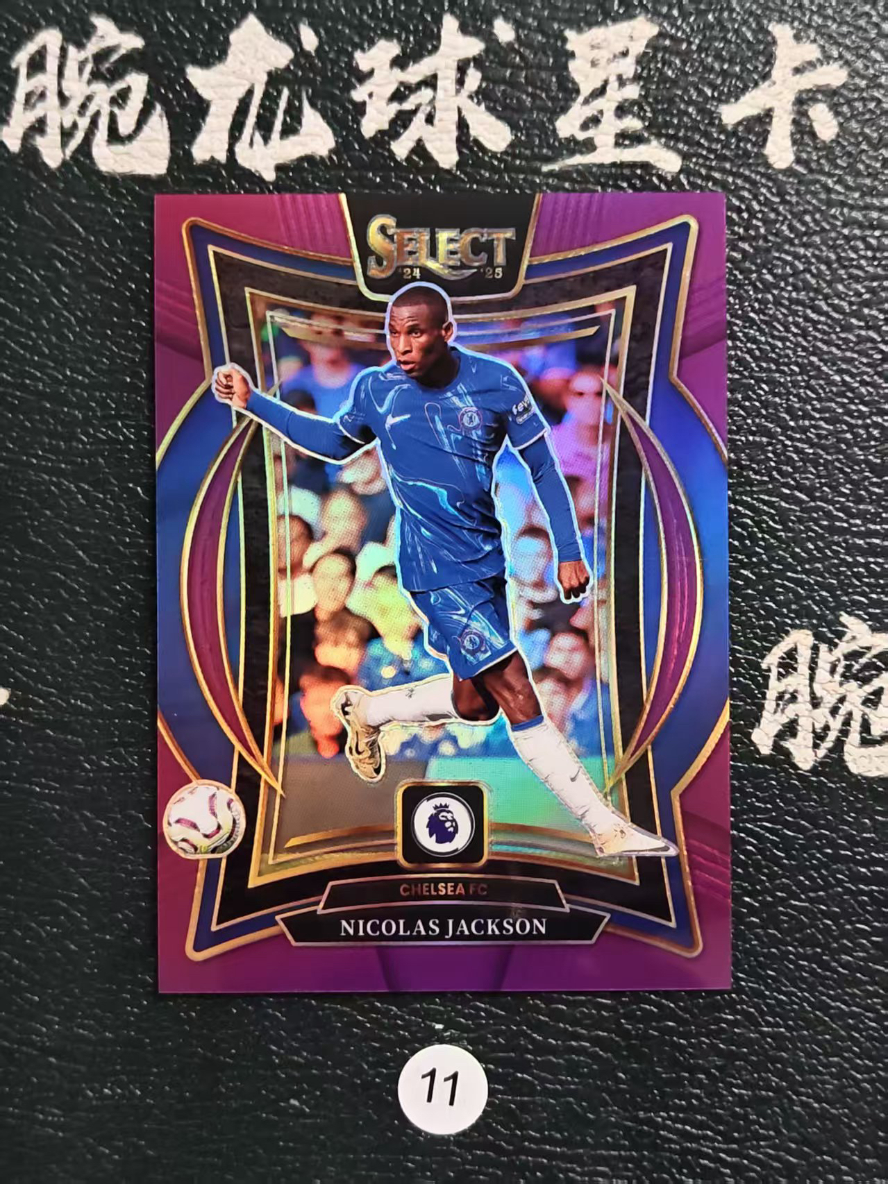 2024-25 【腕龙拍卖 接代卖】 腕龙HanwaiiAX9 Panini Select 英超 雅克松 杰克逊 比利亚雷亚尔 切尔西 紫折 99/140编 NICOLAS JACKSON 卡品如图