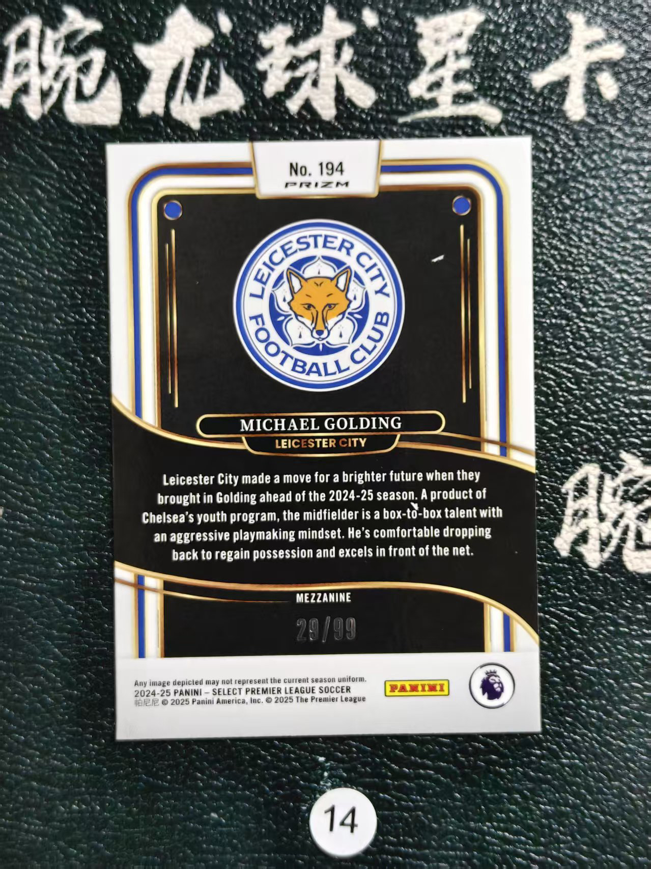 2024-25 【腕龙拍卖 接代卖】 腕龙HanwaiiAX9 Panini Select 英超 迈克尔 戈尔丁 莱斯特城 粉折 RC新秀 29/99编 MICHAEL GOLDING 卡品如图