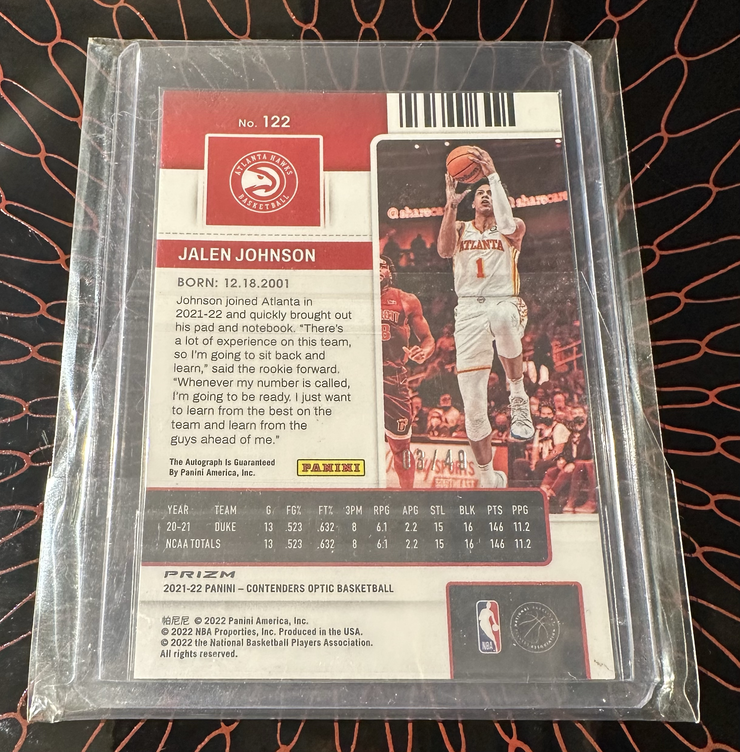 4.品相说明:(1)木盒、国宝、IMM、手提、NOIR、小书、金书、小真金、黑曜石、Encased等厚卡或老卡老系列均有正常白边白角,Prizm、Optic、Select、Flux、Chrome等折射系列薄卡有小划痕、小印记或非人为卡片制作印刷的问题属于正常通行品,镜面系列有小划痕属于通行品相。所有卡片不保证金标,要评级追求金标者请直接购买金标,请有强迫症、品相控的卡迷绕道和谨慎出价;(2)原封卡有明显大瑕疵会标出;(3)所有拍品均为实图专业设备拍摄,参与竞价视为接受卡片的品相,不作特殊说明的都是通行品,如有明显大瑕疵会拍照说明;(4)由于拍摄卡片的角度以及光线的限制,若您对卡片品相仍存在疑问,可在【截标前】向卖家咨询提供更多细节图。