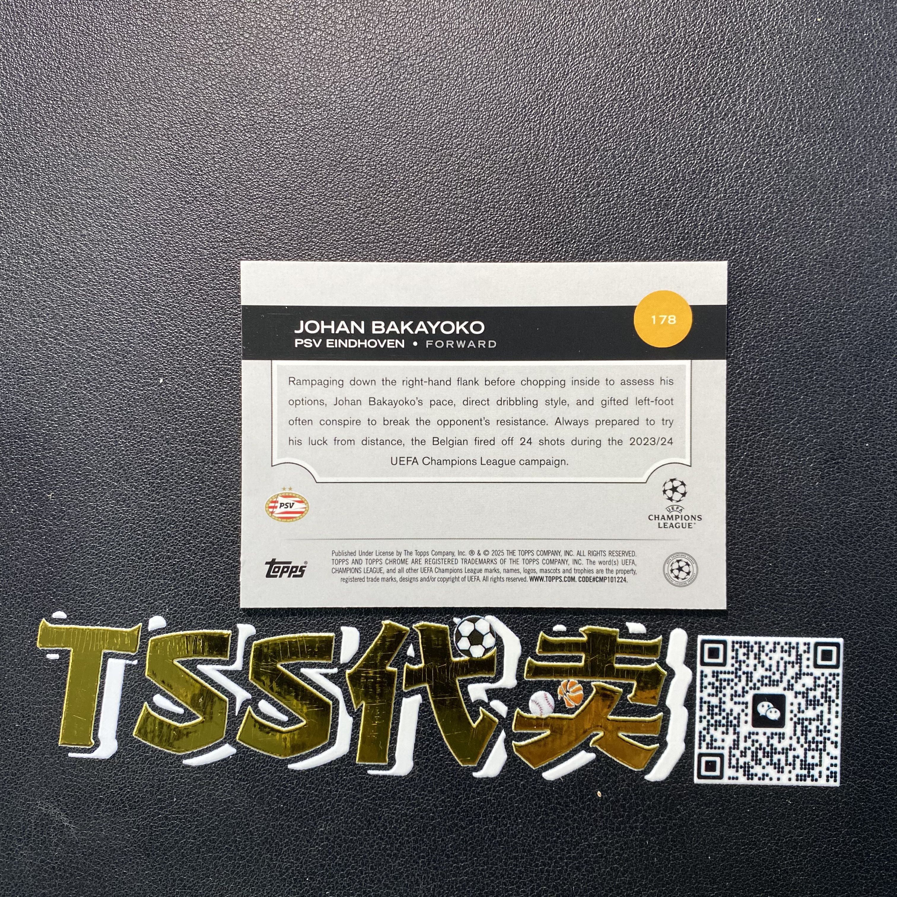 2025 TOPPS Chrome Johan Bakayoko 【TSS代卖-预付80%】 欧冠 TC 日本限定 埃因霍温 约翰 巴卡约科 青熔岩折 199编 JH4651 ZK56-陳