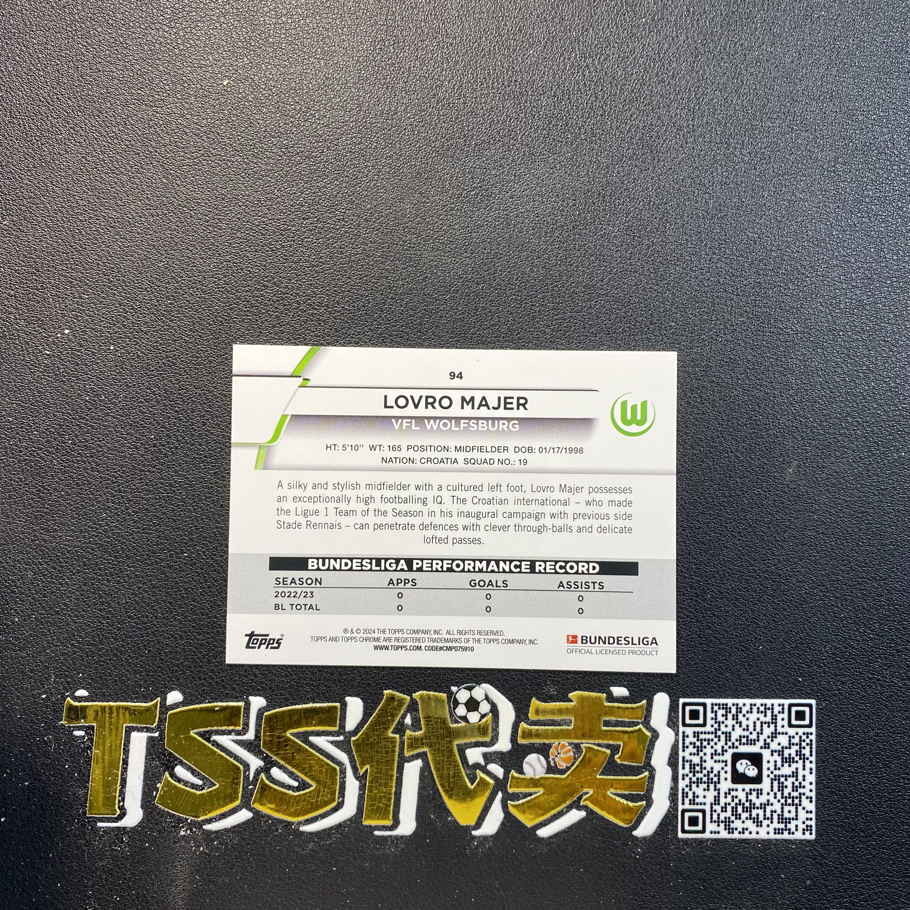2024 【TSS代卖-预付80%】 ucc Lovro Majer 德甲 碧玉 沃尔夫斯堡 马耶尔 金玉折 60编 卡品如图 JH4677 ZK37-園