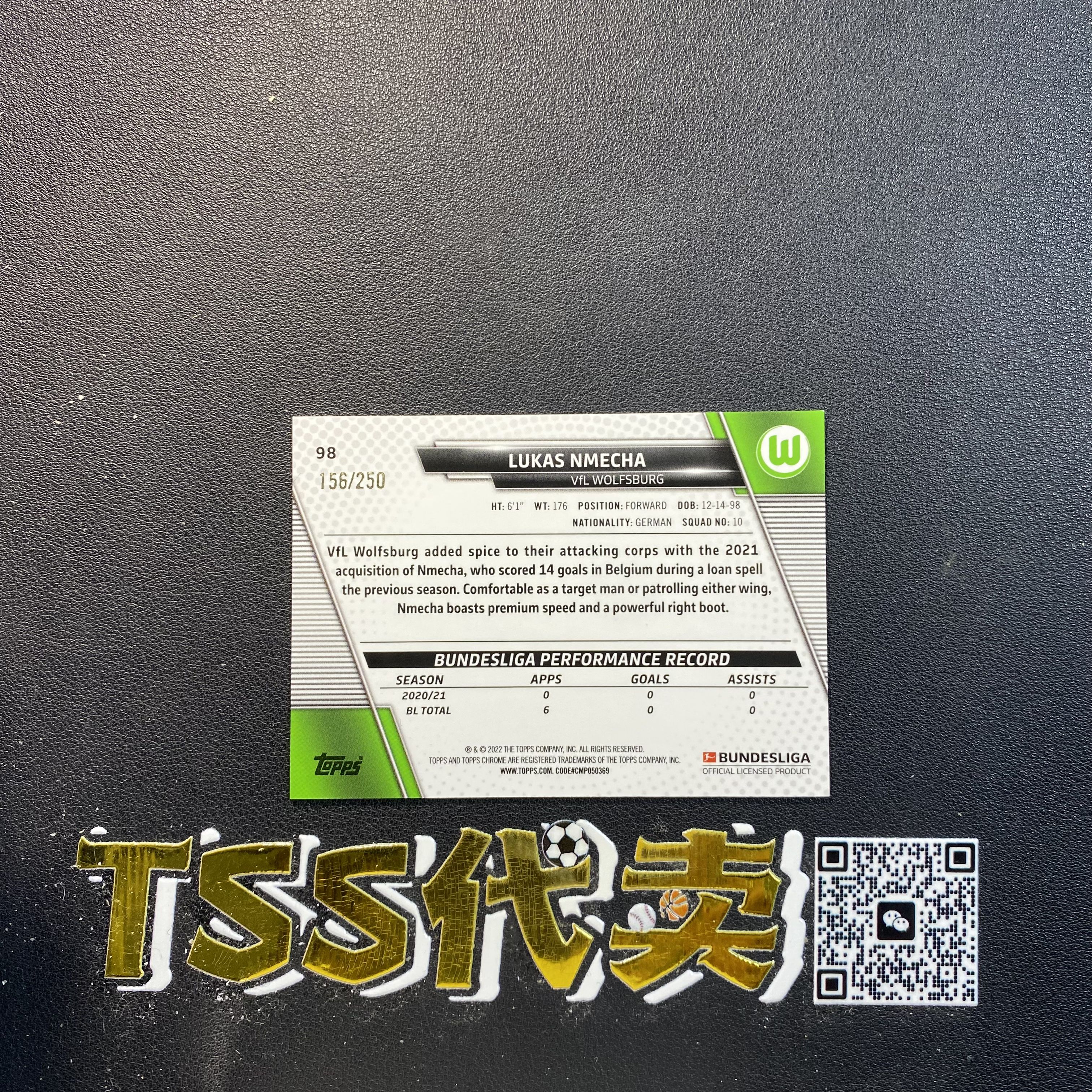 2022 【TSS代卖-预付80%】 Chrome Lukas Nmecha 德甲 chrome 沃尔夫斯堡 恩姆查 恩梅查 银棋盘折 250编 卡品如图 JH4677 ZK37-園