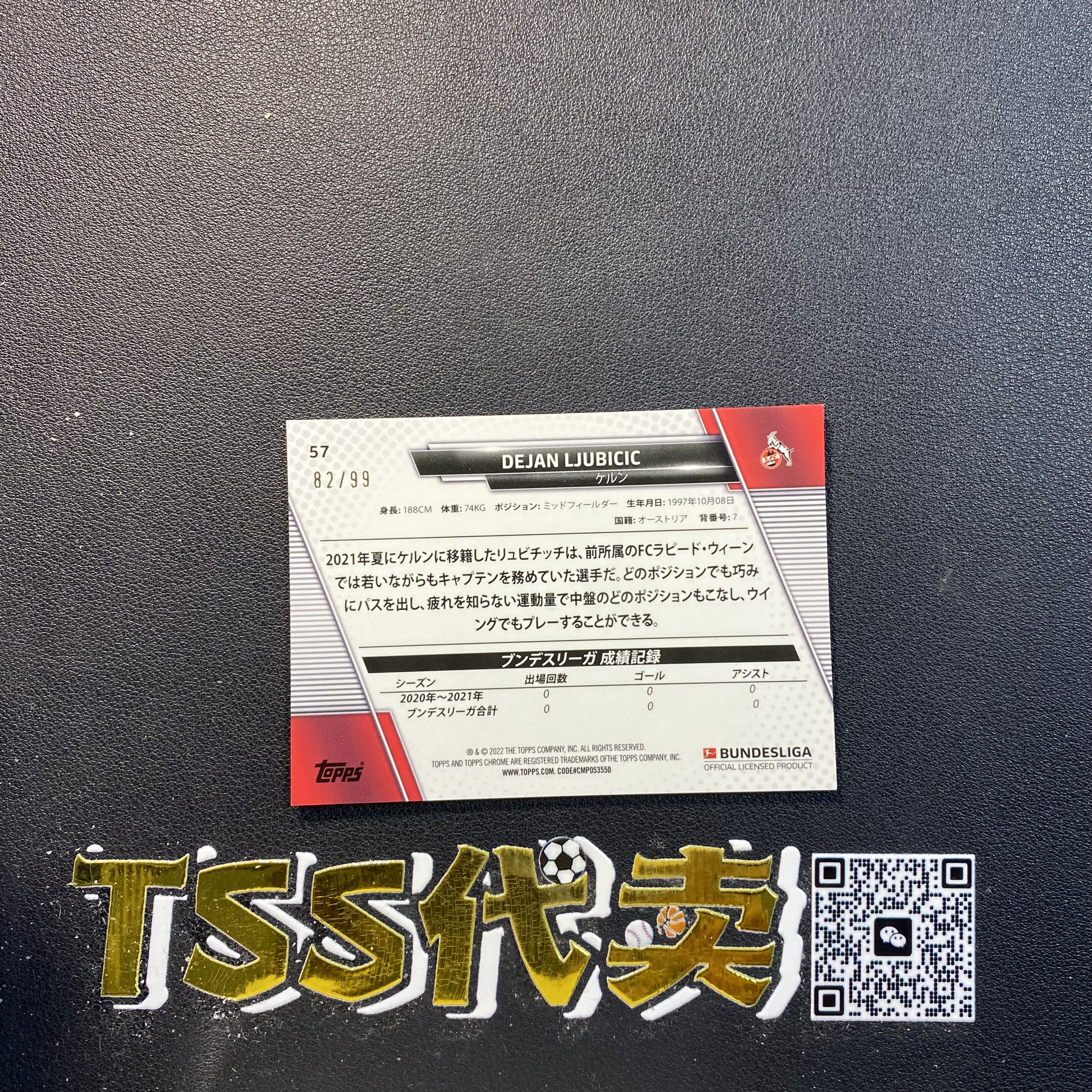 2022 【TSS代卖-预付80%】 ucc ljubicic 日版 德甲 ucc 科隆 新秀rc 柳比契奇 绿mojo折 99编 卡品如图 JH4677 ZK41-園