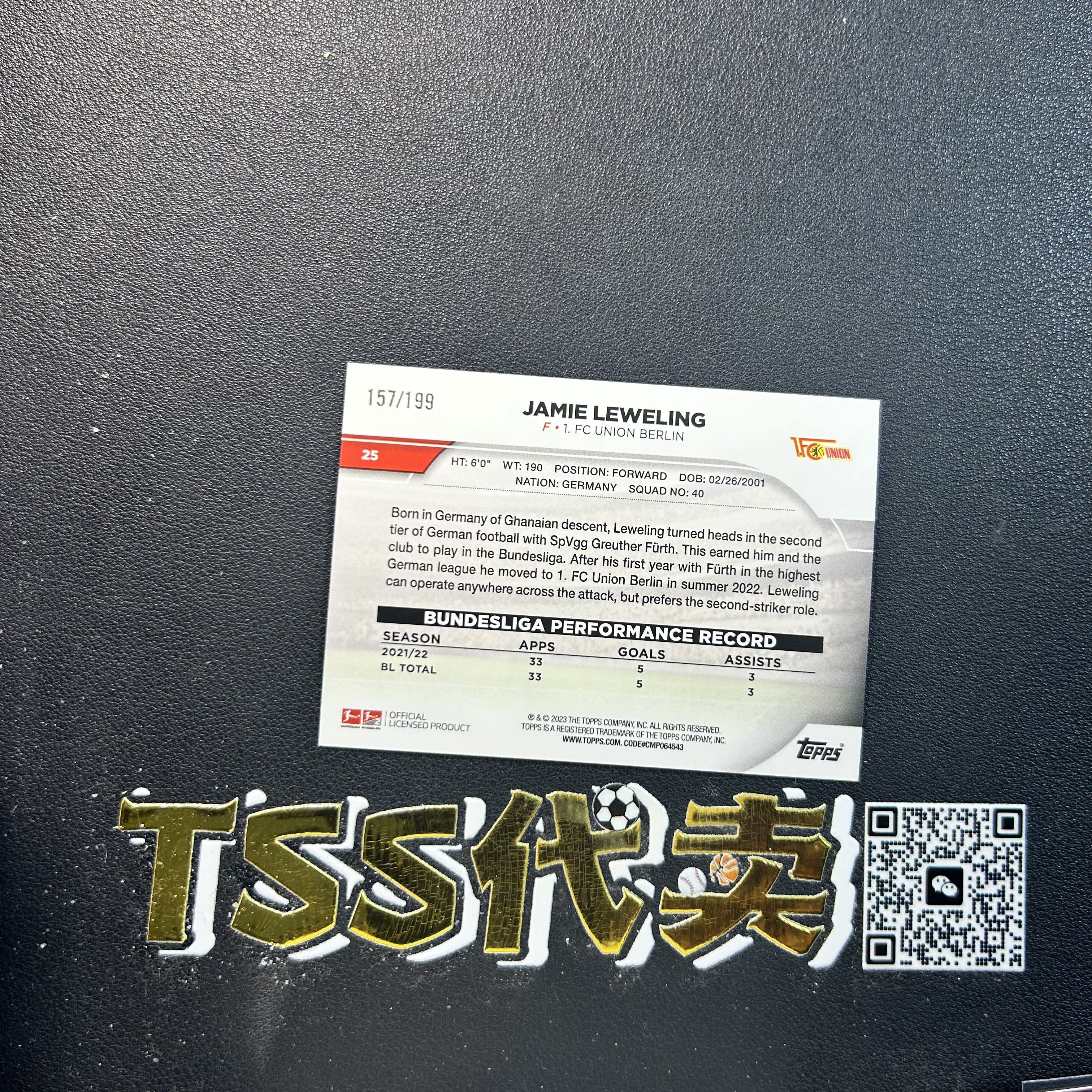 【TSS代卖-预付80%】2023 topps 德甲碧玉德甲 菲尔特 勒威林(Jamie Leweling) RC新秀 199编 新春碧玉折 YN6337 ZK57-陳