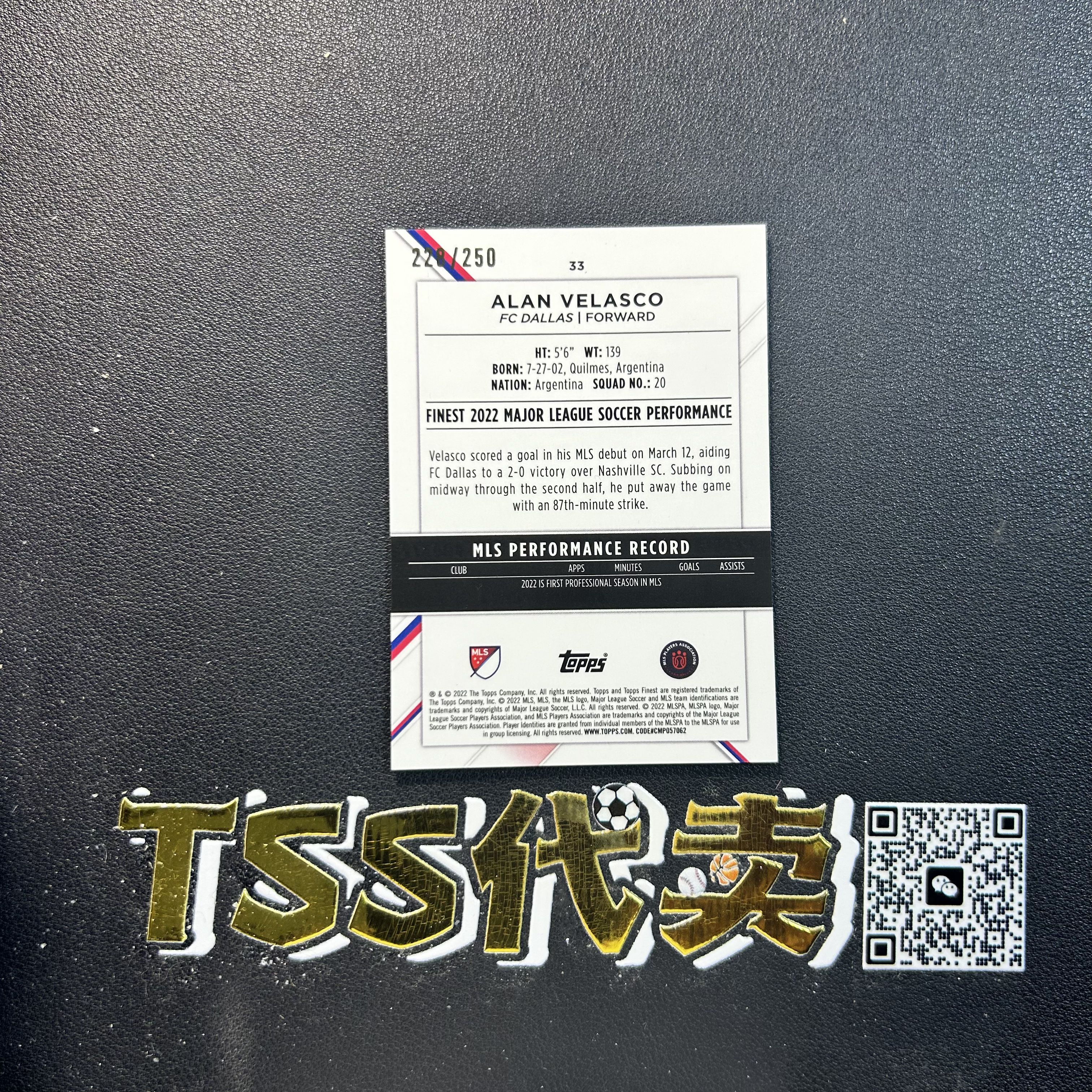 【TSS代卖-预付80%】2022 Topps finest  MLS Alan Velasco 美职联  达拉斯 阿兰 贝拉斯科  250编 紫折 YN6337 ZK57-陳