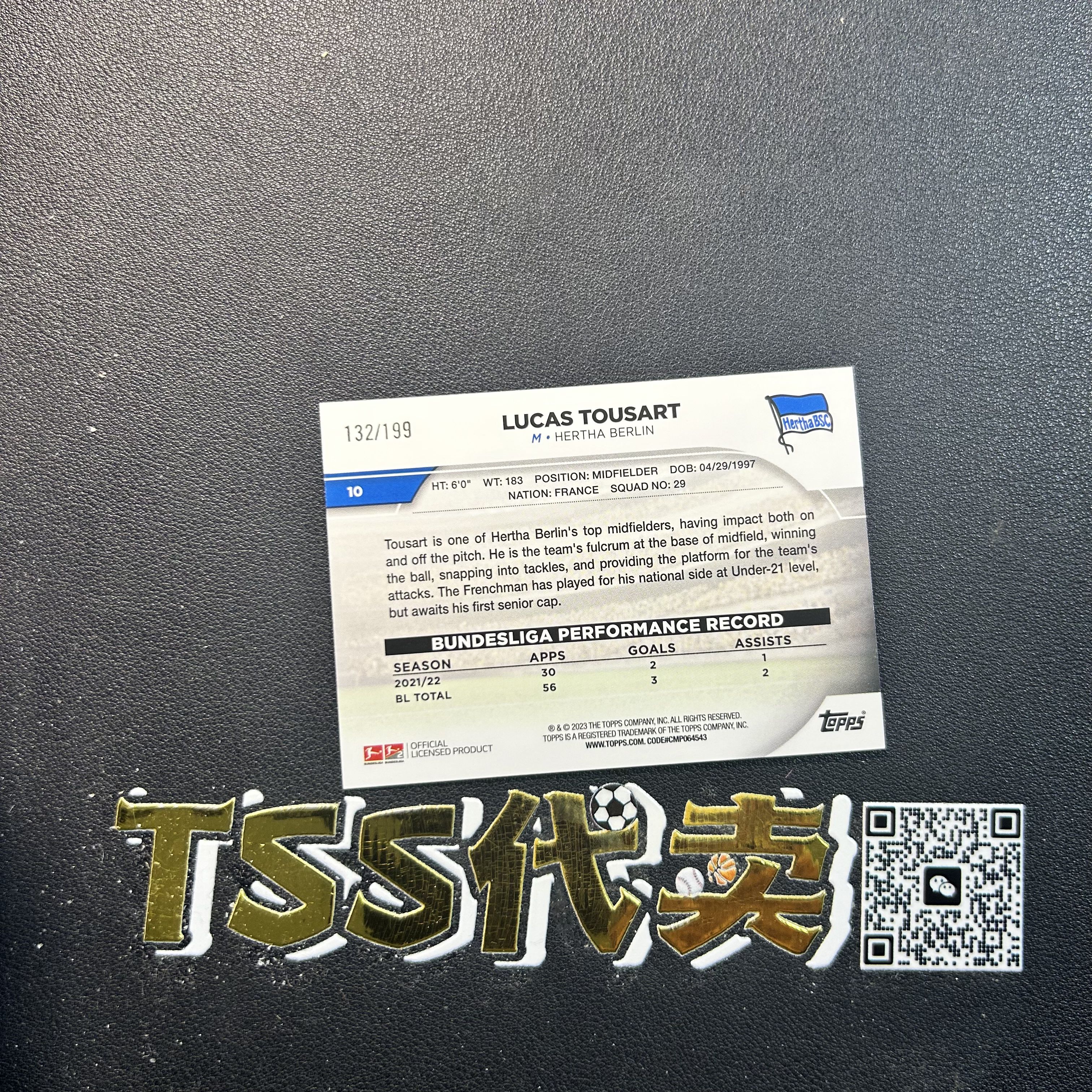 2023 Topps Chrome Lucas Tousart 【TSS代卖-预付80%】德甲 图萨尔 /199 带编 红折 新春特卡 柏林赫塔 YN6337 ZK57-陳