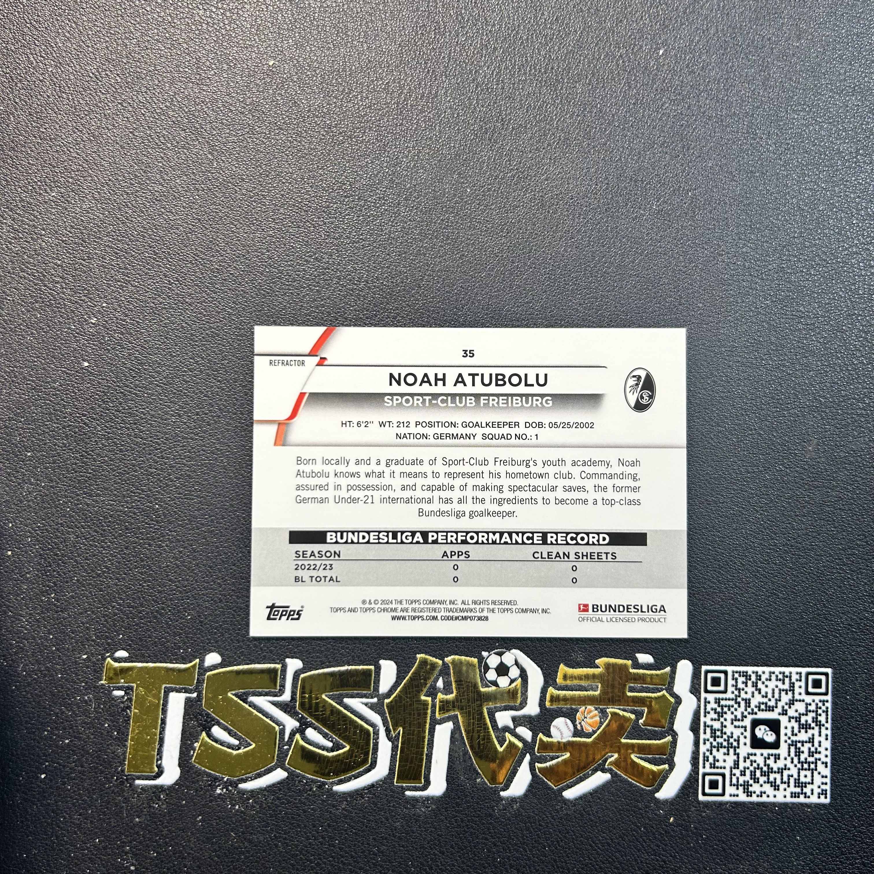 2024 Topps Chrome Noah Atubolu RC 德甲TC 弗赖堡 新秀 阿图波鲁 阿图博卢 德国 顶级门将 粉折 折射 399编 YN6337 ZK57-陳
