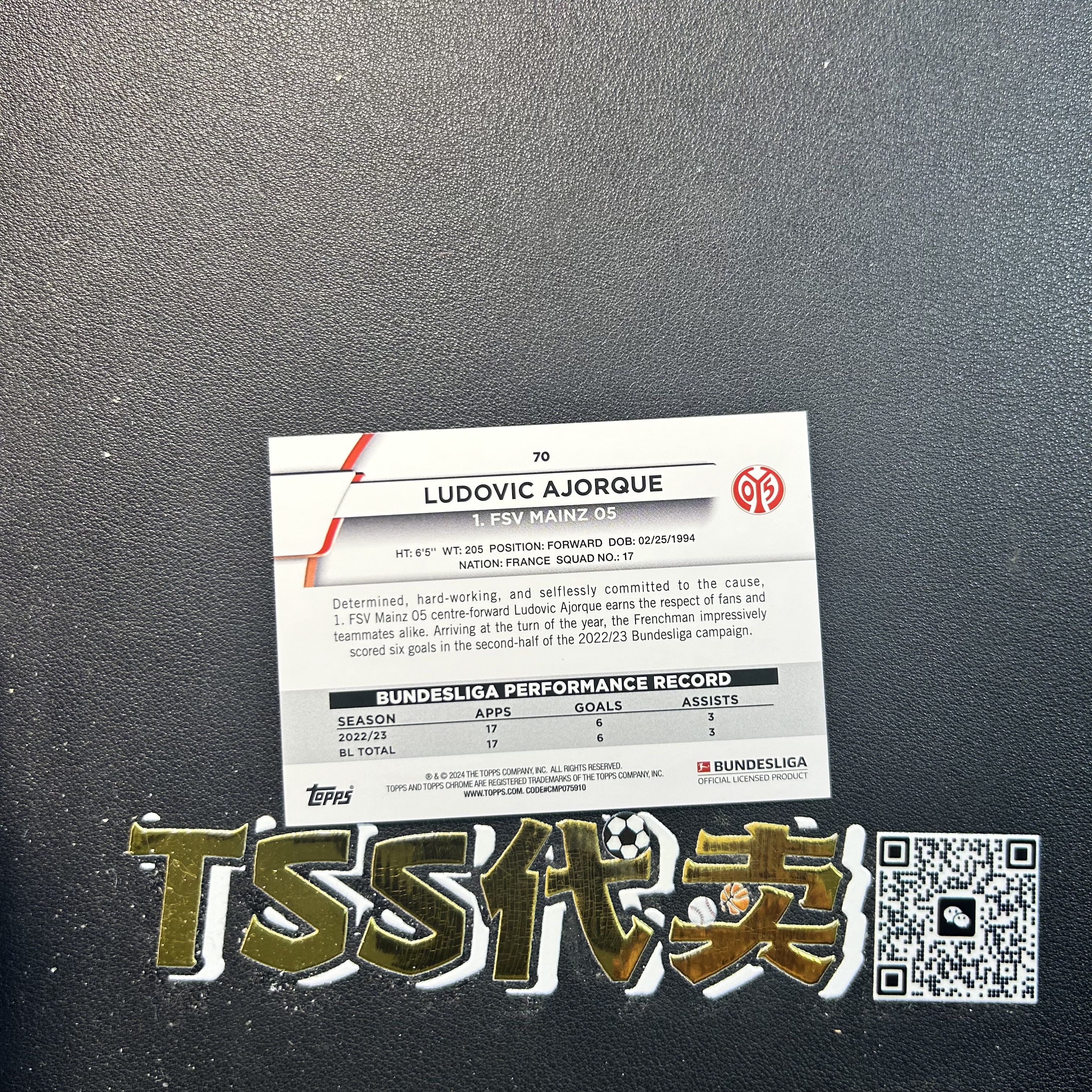 2024 【TSS代卖-预付80%】 Topps Ludovic Ajorque 德甲 碧玉 美因茨 卢多维奇 阿若克 阿诺克 阿乔克 阿约克 蓝玉折 175编 YN6337 ZK57-陳