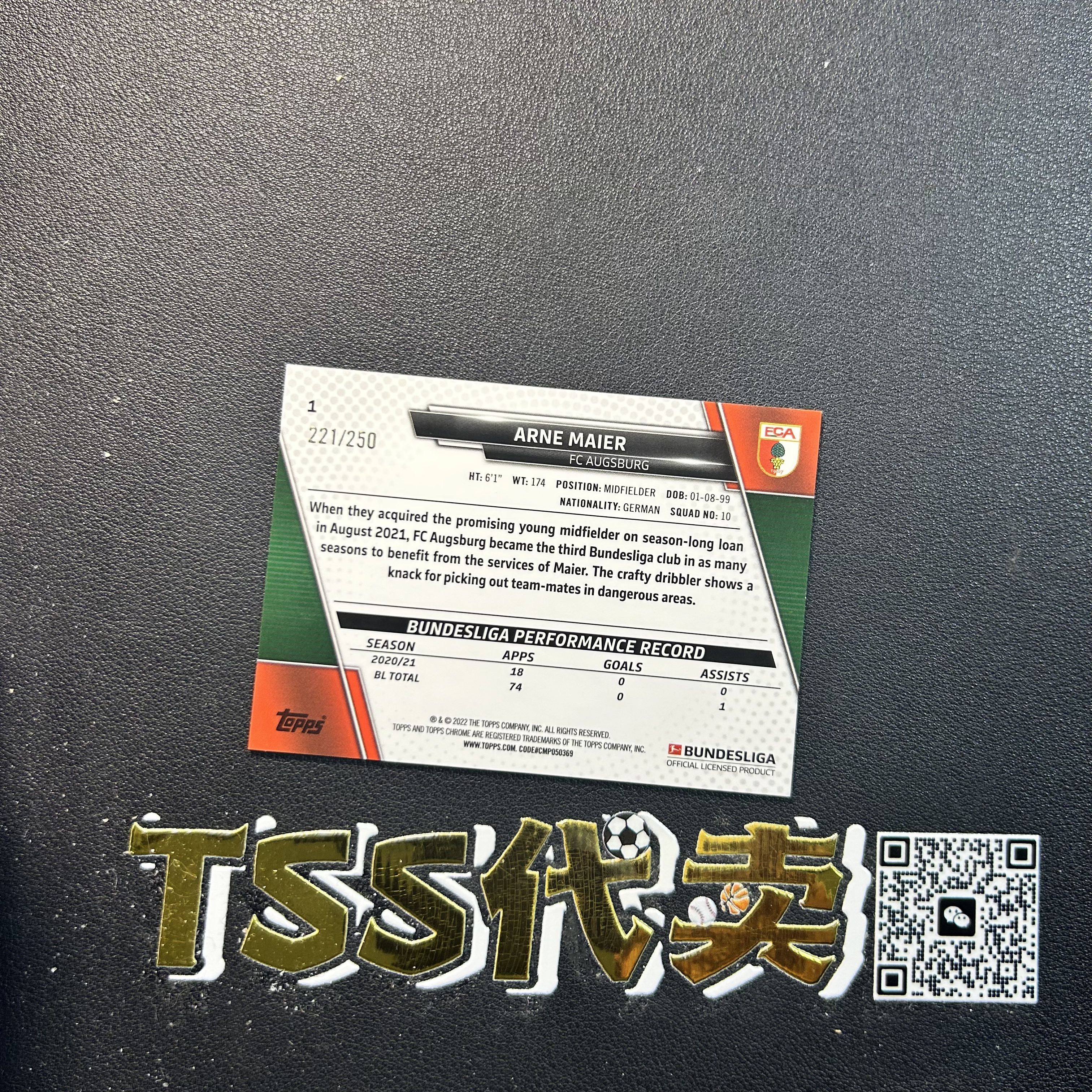 【TSS代卖-预付80%】2022 Topps Chrome Arne Maier 奥格斯堡 迈尔  250编  马赛克折 德甲 YN6337 ZK57-陳