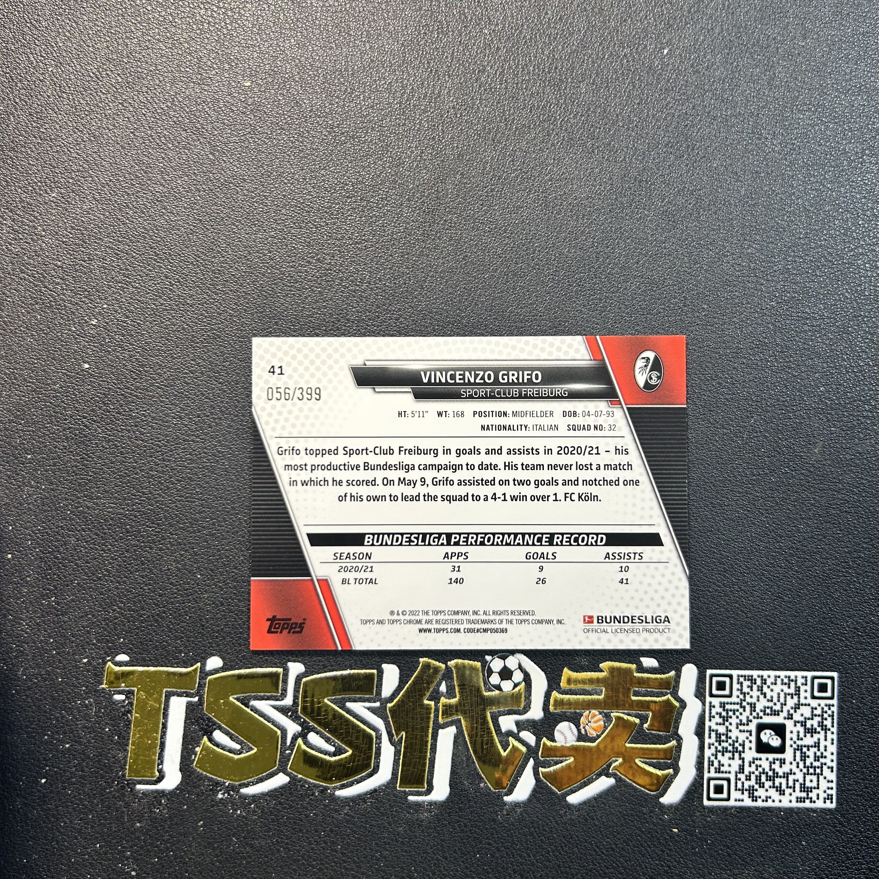 【TSS代卖-预付80%】2021-22 Topps Chrome Vincenzo Grifo 德甲 tc 弗赖堡 格里弗 399编 粉波纹折 YN6337 ZK57-陳