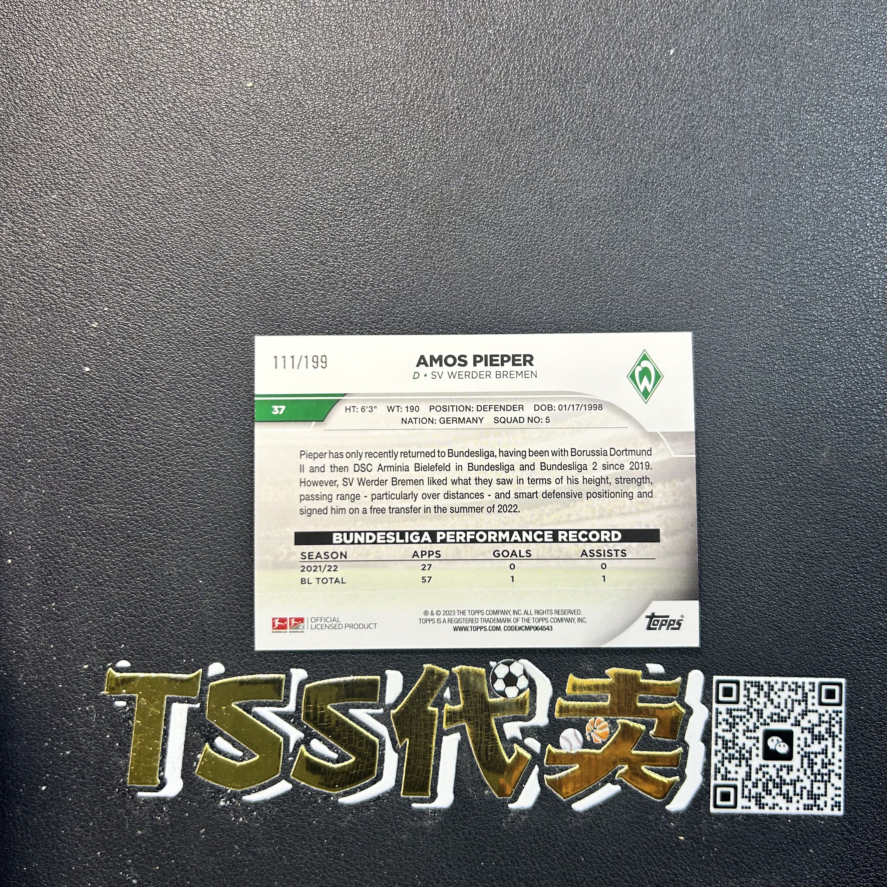 【TSS代卖-预付80%】 2022-23 topps 德甲碧玉 Amos Pieper 云达不莱梅 皮博 199编 祥云折 YN6337 ZK57-陳