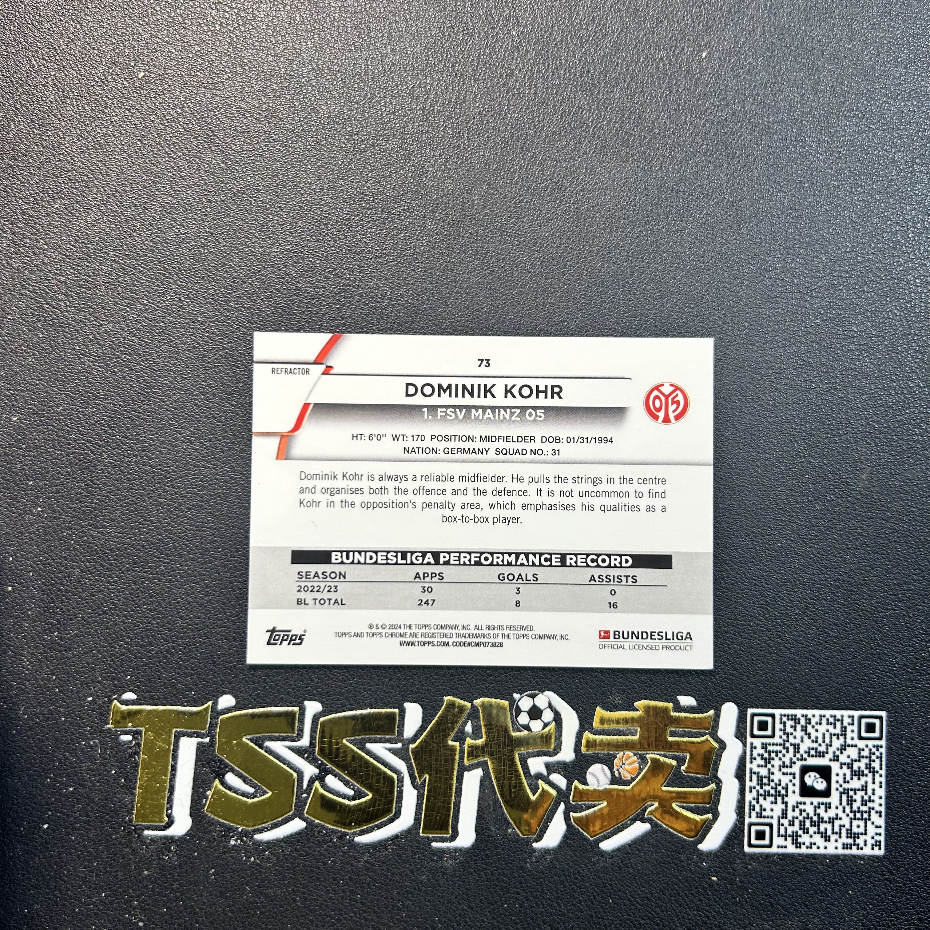 【TSS代卖-预付80%】2023-24 Topps Chrome tc 德甲 多米尼克 科尔 Dominik Kohr 275编 梦幻泡泡折 美因茨 德国 YN6337 ZK57-陳