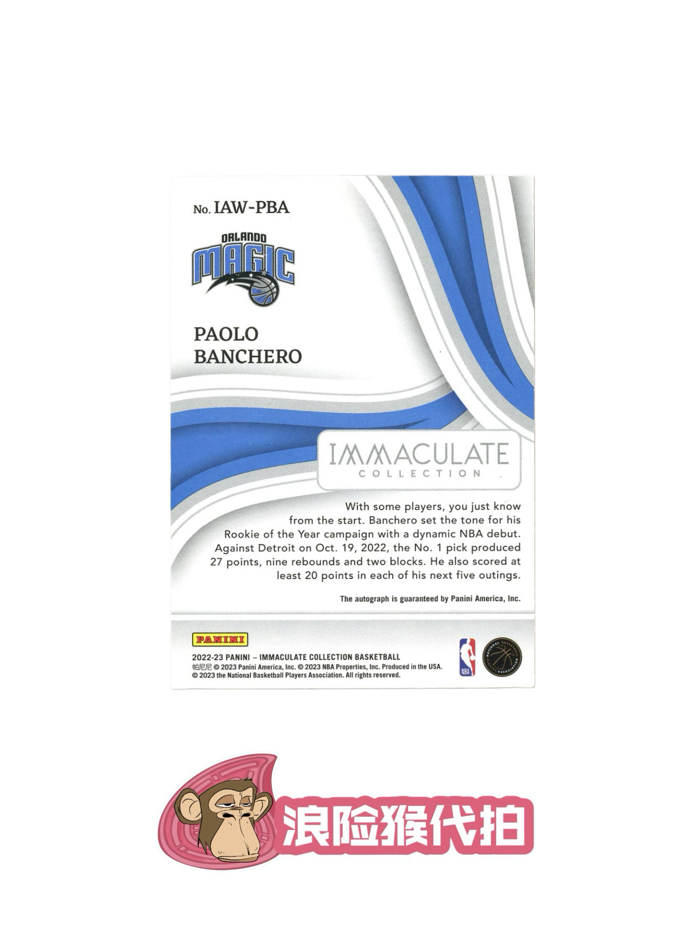 【浪险猴🐒代拍】2022-23 Panini Immaculate Paolo Banchero 爱咪咪 新秀RC 班切罗 签字 镜面卡签 荣誉签 捧杯 14/99编 魔术状元 专收必备 朱