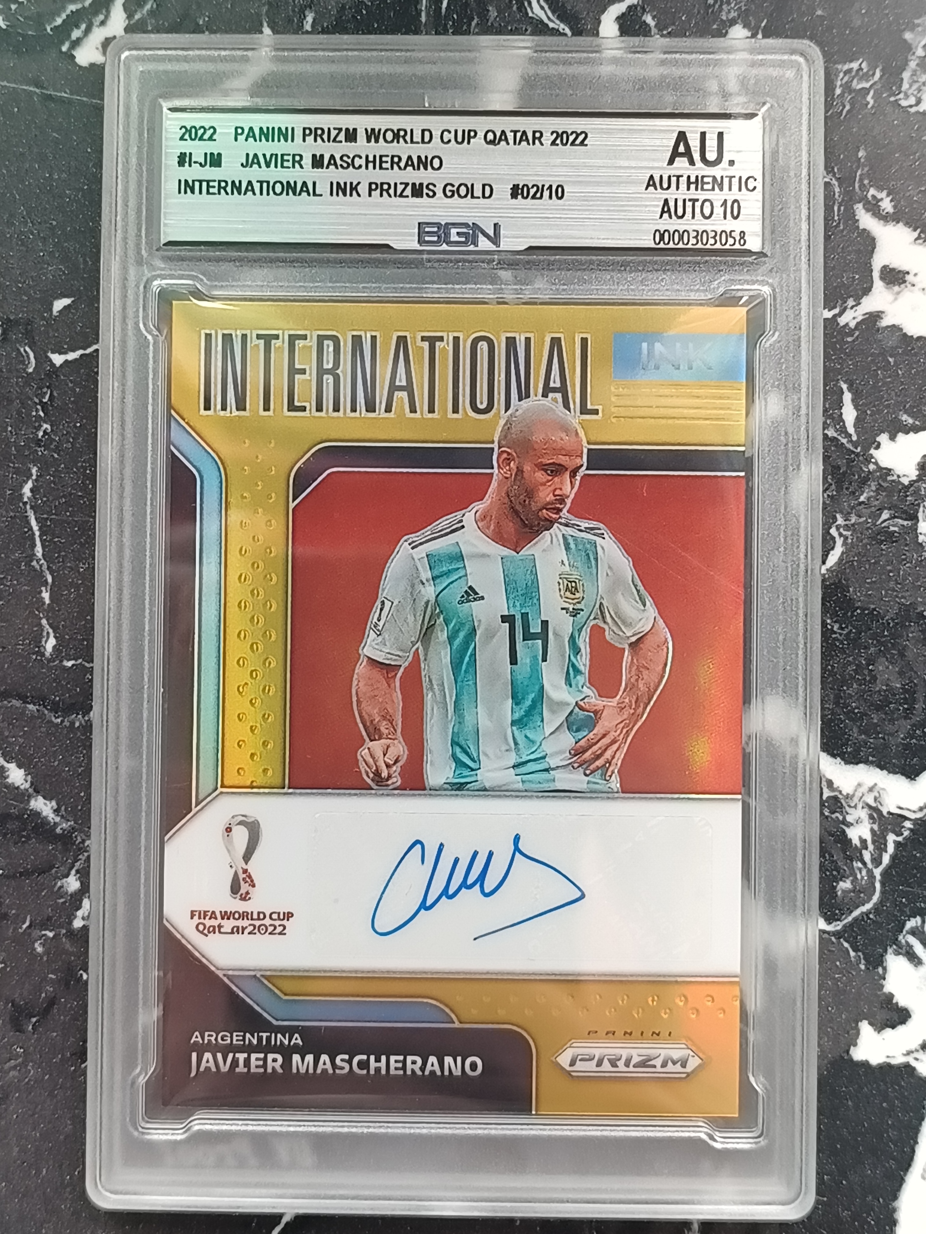 2022 Panini World Cup Prizm Javier Mascherano 世界杯PZ 阿根廷 巴萨 利物浦 马斯切拉诺 10编 金折 折射 Ink 完美签字 bgn评级 卡品如图