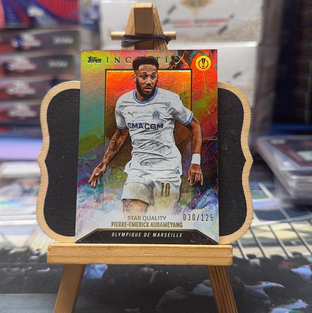 2024 Topps incprtion Pierre Emerick Aubameyang 欧冠 盗梦空间 奥巴梅杨 马赛 125编 绿折 瑕疵如图 拍前看描述 不说