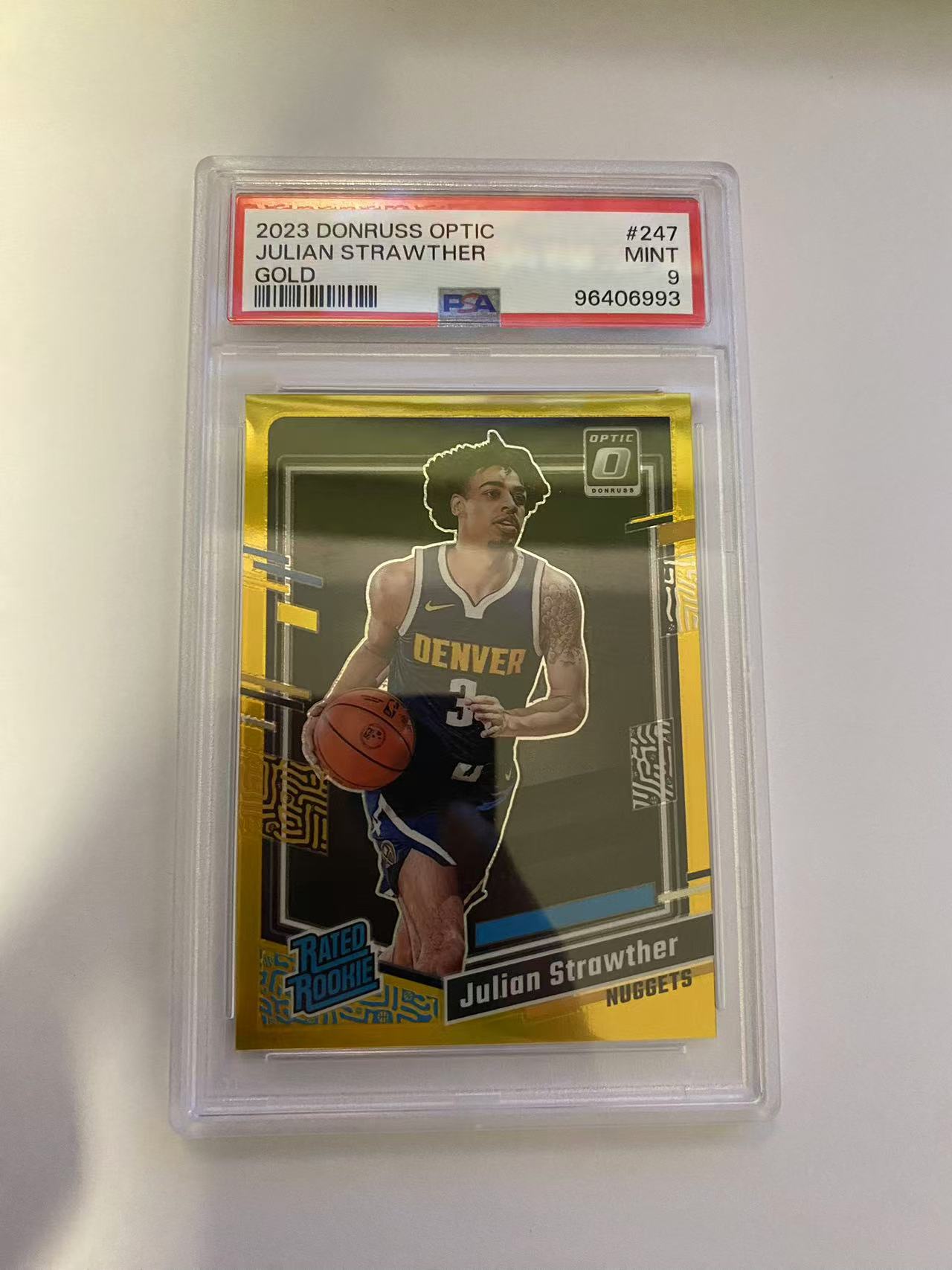 2023-24 Panini donruss optic Julian Strawther RC 杜蕾斯 op 掘金 朱利安 斯特劳瑟 新秀 金折 1/10编 首编 psa9 卡品如图
